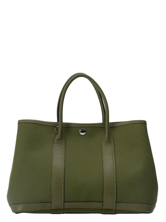 エルメス ガーデンパーティ TPM ハンドバッグ トワルオフィシェ×ブッフル アニスグリーン シルバー金具