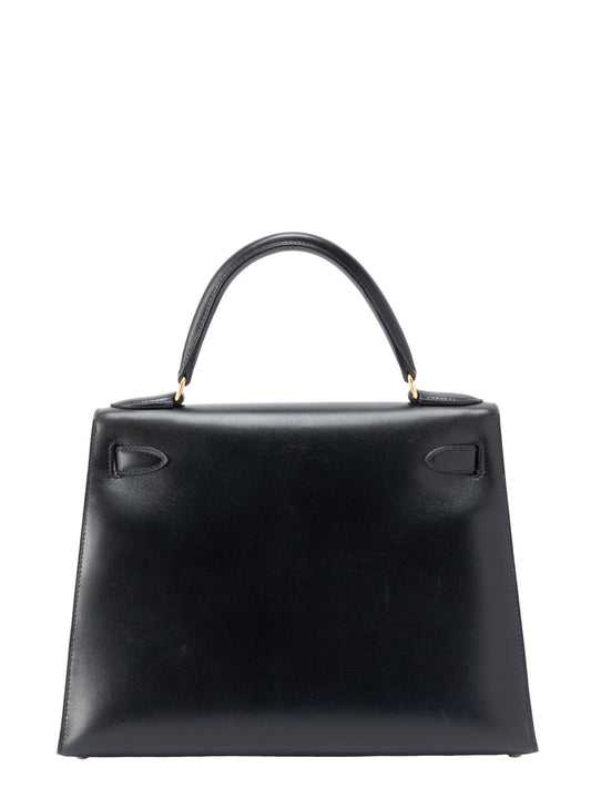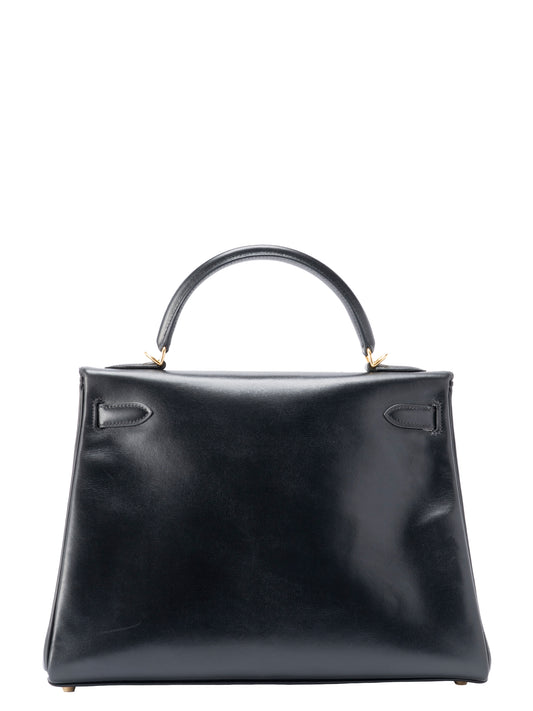 エルメス ケリー32 ハンドバッグ 内縫い □E刻:2001年 ボックスカーフ ブラック ゴールド金具