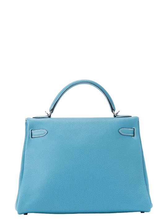 エルメス ケリー32 ハンドバッグ 内縫い □J刻:2006年 トゴ ブルージーン シルバー金具