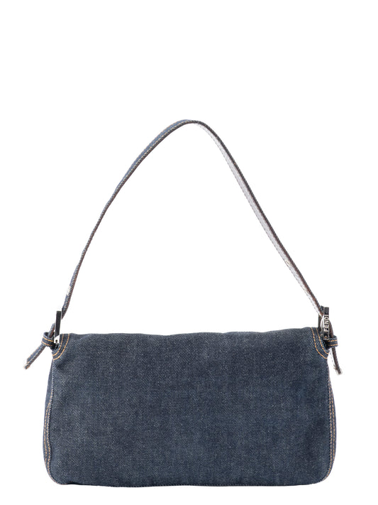 フェンディ マンマバケット ショルダーバッグ デニム ネイビー シルバー金具