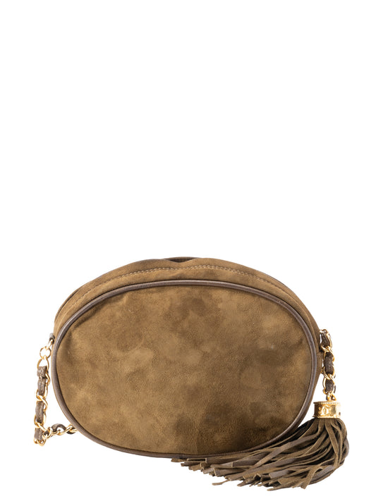 シャネル デカココ チェーンショルダーバッグ スエード カーキ ゴールド金具