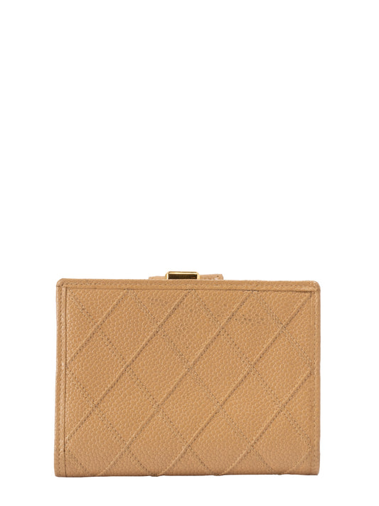 シャネル ビコローレ 二つ折り財布 キャビアスキン ベージュ ゴールド金具