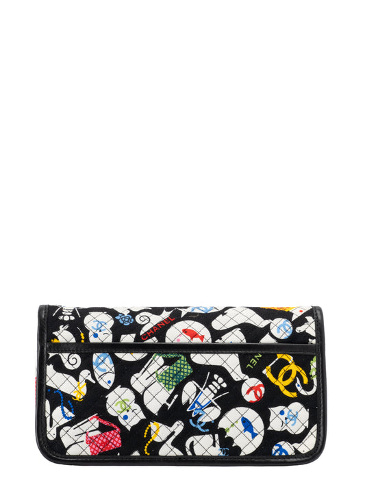 シャネル マトラッセ ベビーアニマルライン ポーチ キャンバス コットン マルチカラーxブラック ゴールド金具