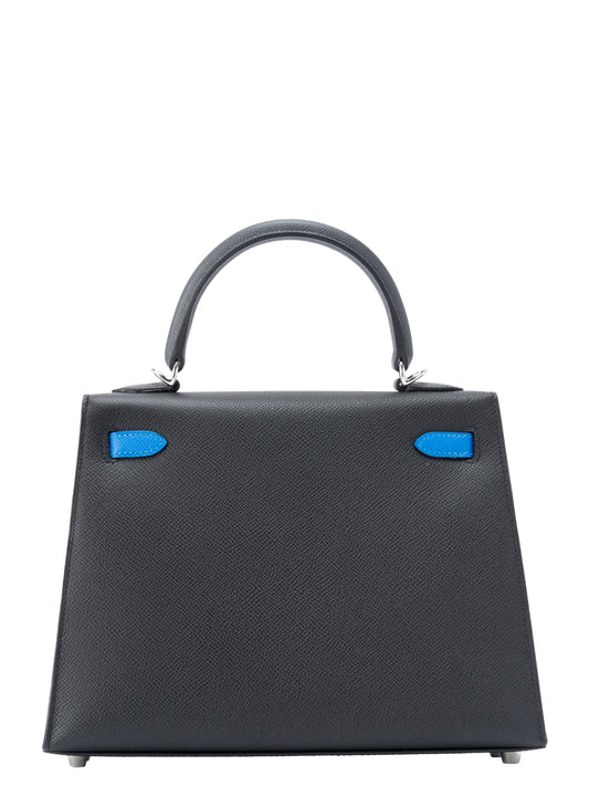 エルメス ケリー25 トリコロール ハンドバッグ 外縫い K刻:2025年 エプソン ブラック×ブルーイドラ×アルドワーズ シルバー金具 新品