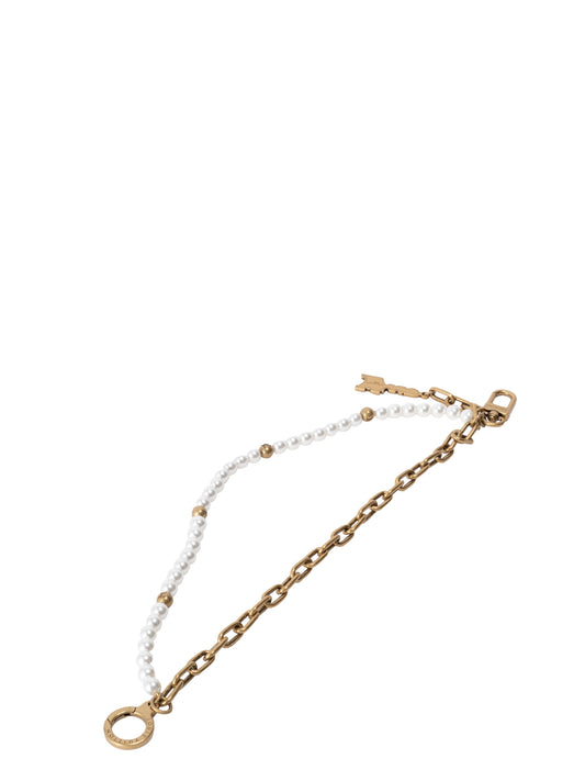 ルイ・ヴィトン M01689 チェーンベルト LVロゴプレート付 パールチェーンリンクチャーム 金メッキ×パール ゴールド