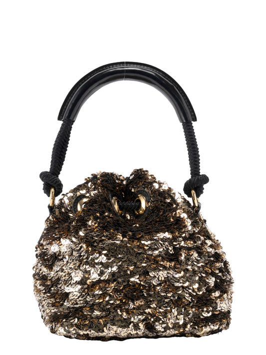 ルイ・ヴィトンM40322 ミニノエ ハンドバッグ スパンコール ゴールド×ブラック ゴールド金具