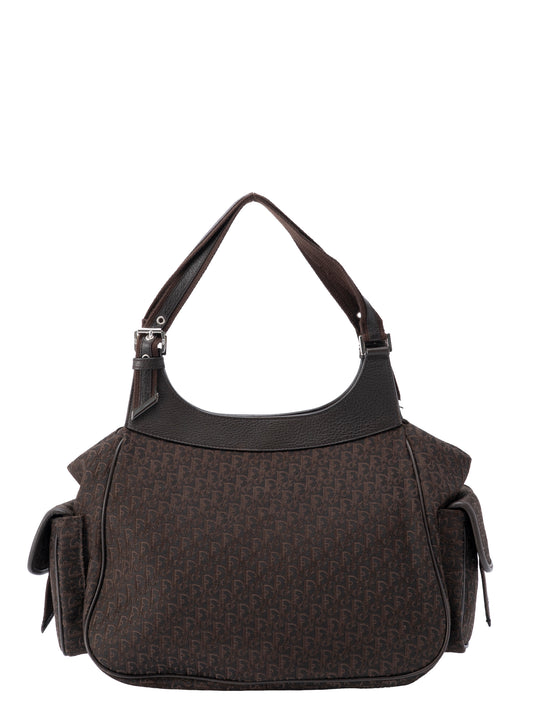 デイオール ストリートシック マルチポケット ハンドバッグ レザー×キャンバス ダークブラウン シルバー金具