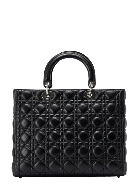 ディオール レディディオール カナージュ ミディアム ハンドバッグ レザー ブラック シルバー金具