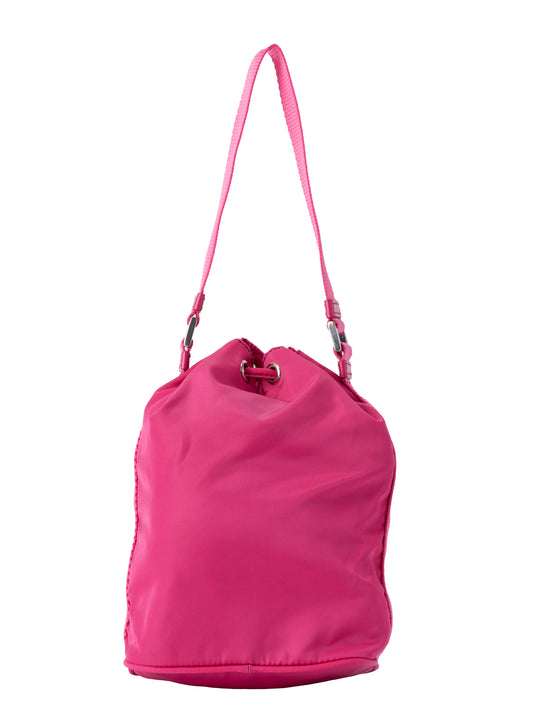 プラダ 巾着 ハンドバッグ ナイロン ピンク シルバー金具
