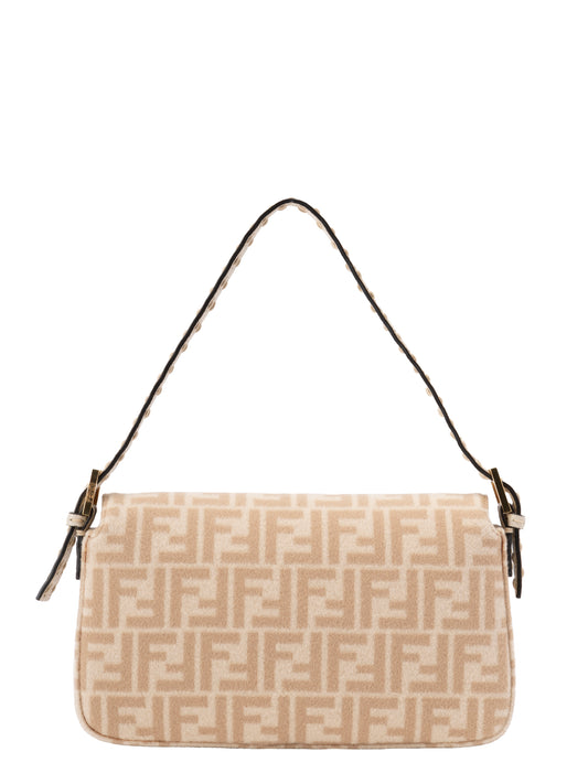 フェンディ ズッカ マンマバケット ショルダーバッグ ウール×レザー ベージュ ゴールド金具