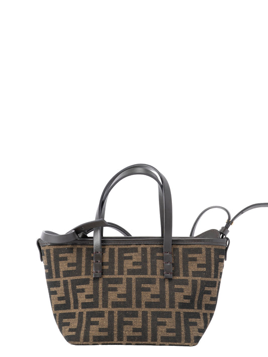 フェンディ ロールミニ 2WAY トートバッグ キャンバス ブラウン ゴールド金具