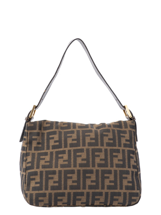 フェンディ ズッキーノ マンマバケット ショルダーバッグ コーティングキャンバス ブラウン ゴールド金具