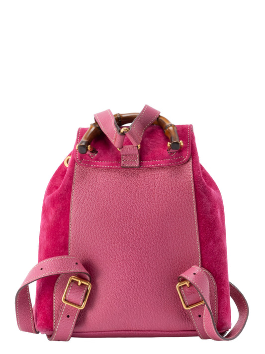 グッチ バンブー リュックサック スエード ピンク ゴールド金具