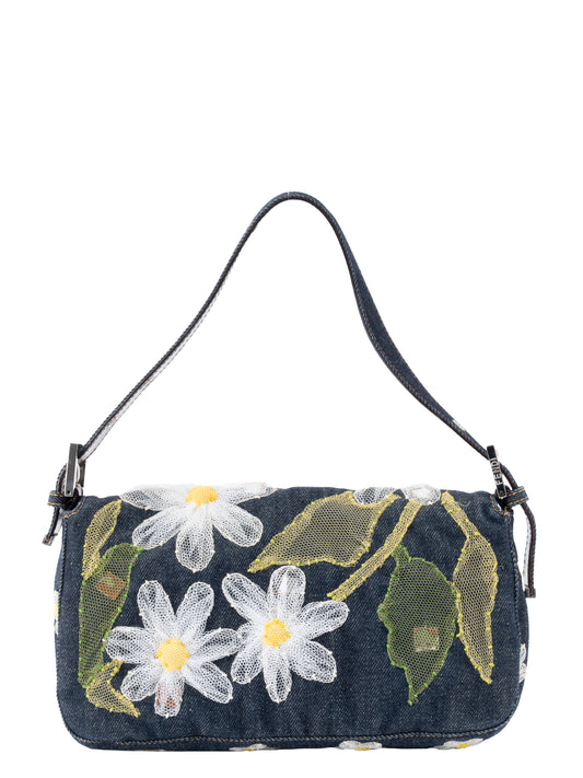 フェンディ マンマバケット 刺繍ショルダーバッグ デニム ネイビー シルバー金具