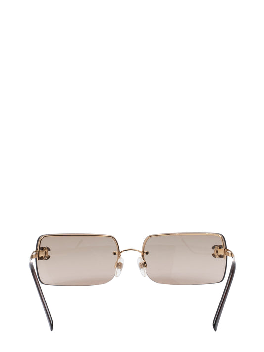 シャネル ココマーク サングラス ラインストーン プラスチック ブラウン ゴールド金具