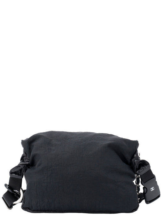 シャネル チェーン ボディ ウエストバッグ ナイロン ブラック シルバー金具