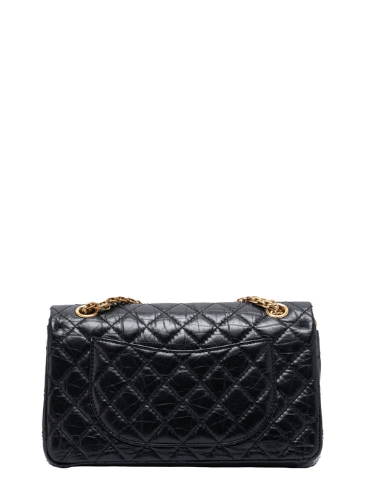 シャネル Wフラップ 2.55 チェーンショルダーバッグ カーフスキン ブラック ゴールド金具