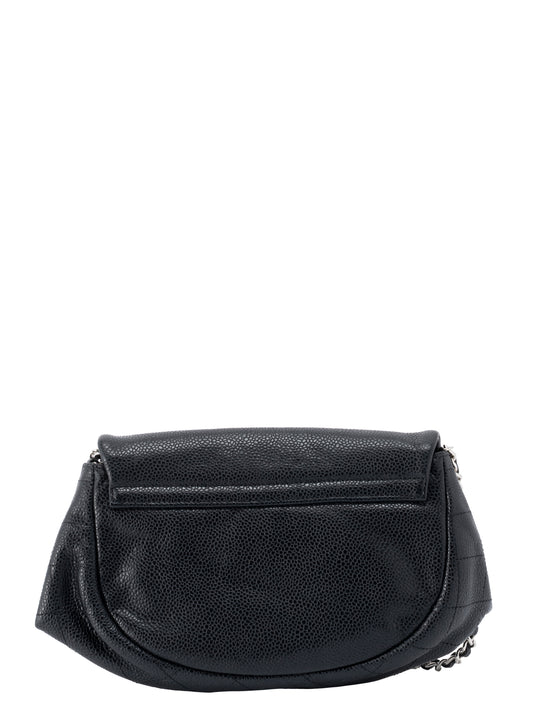 シャネル ココマーク ハーフムーン チェーンウォレット キャビアスキン ブラック シルバー金具