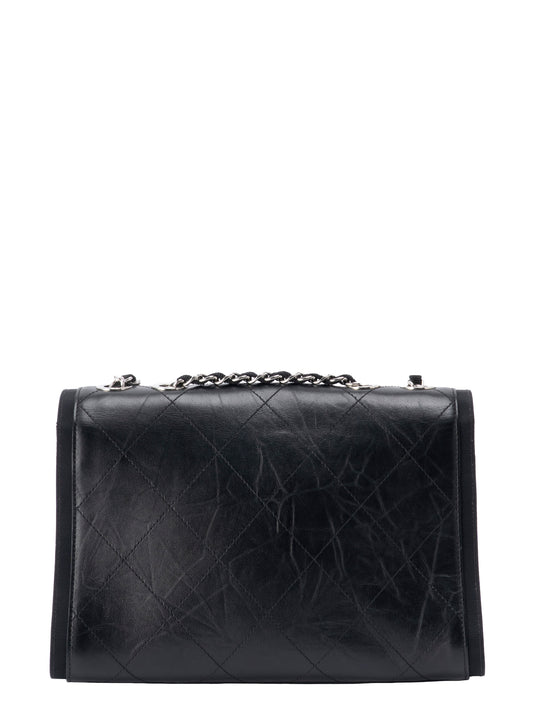 シャネル マトラッセ シングルフラップチェーンショルダーバッグ カーフスキン ブラック シルバー金具