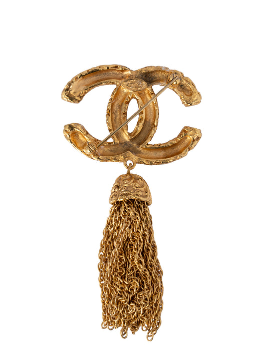 シャネル ココマーク フリンジ 溶岩 ブローチ 金メッキ ゴールド