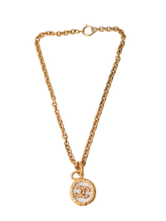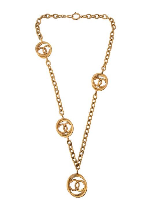シャネル 溶岩 ココマーク 丸型 ラウンド ネックレス 金メッキ ゴールド