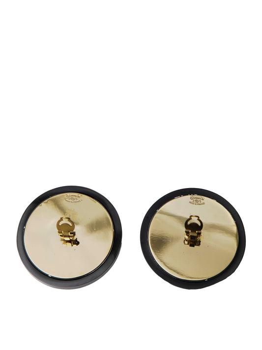 シャネル 丸型 ココマーク アクリル プラスチック イヤリング ブラック ゴールド