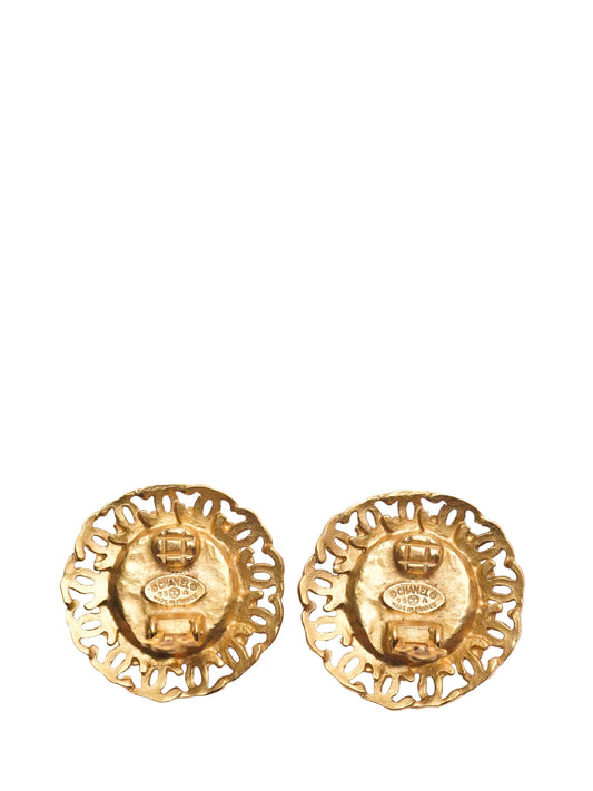 シャネル 丸型 ココマーク CCマーク イヤリング カラーストーン 金メッキ ゴールド