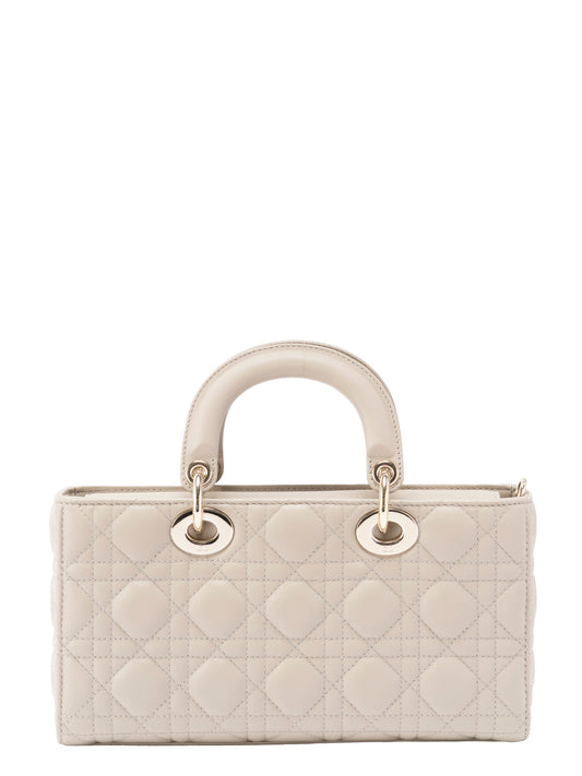 ディオール レディディオール D-Joy カナージュ 2WAYハンドバッグ レザー ベージュ ゴールド金具