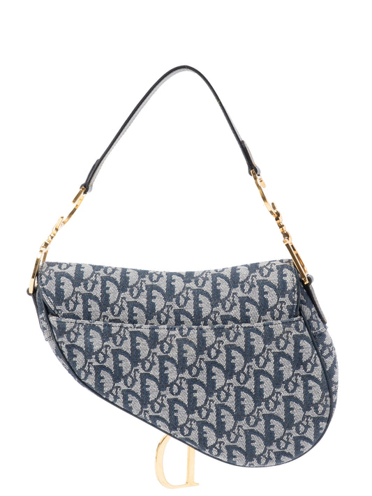 ディオール トロッター サドルバッグ ショルダーバッグ デニム ネイビー ゴールド金具