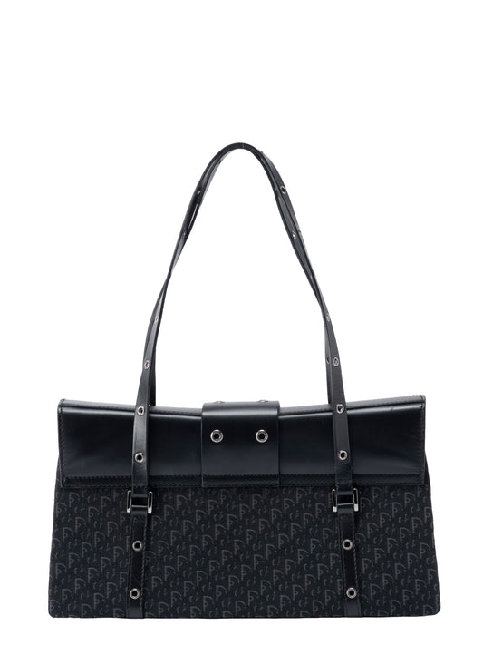 ディオール トロッター ストリートシック ショルダーバッグ レザー×キャンバス ブラック シルバー金具
