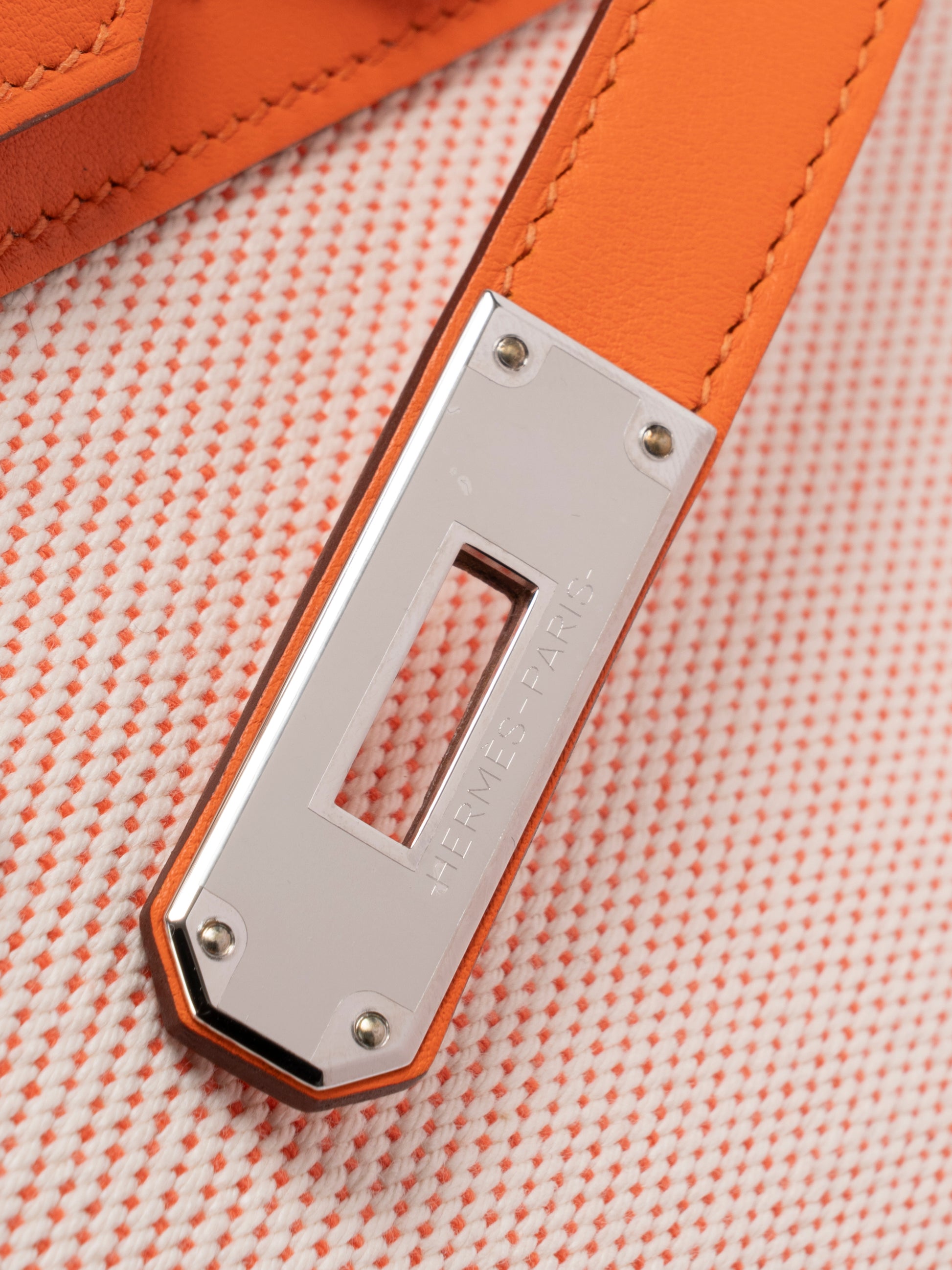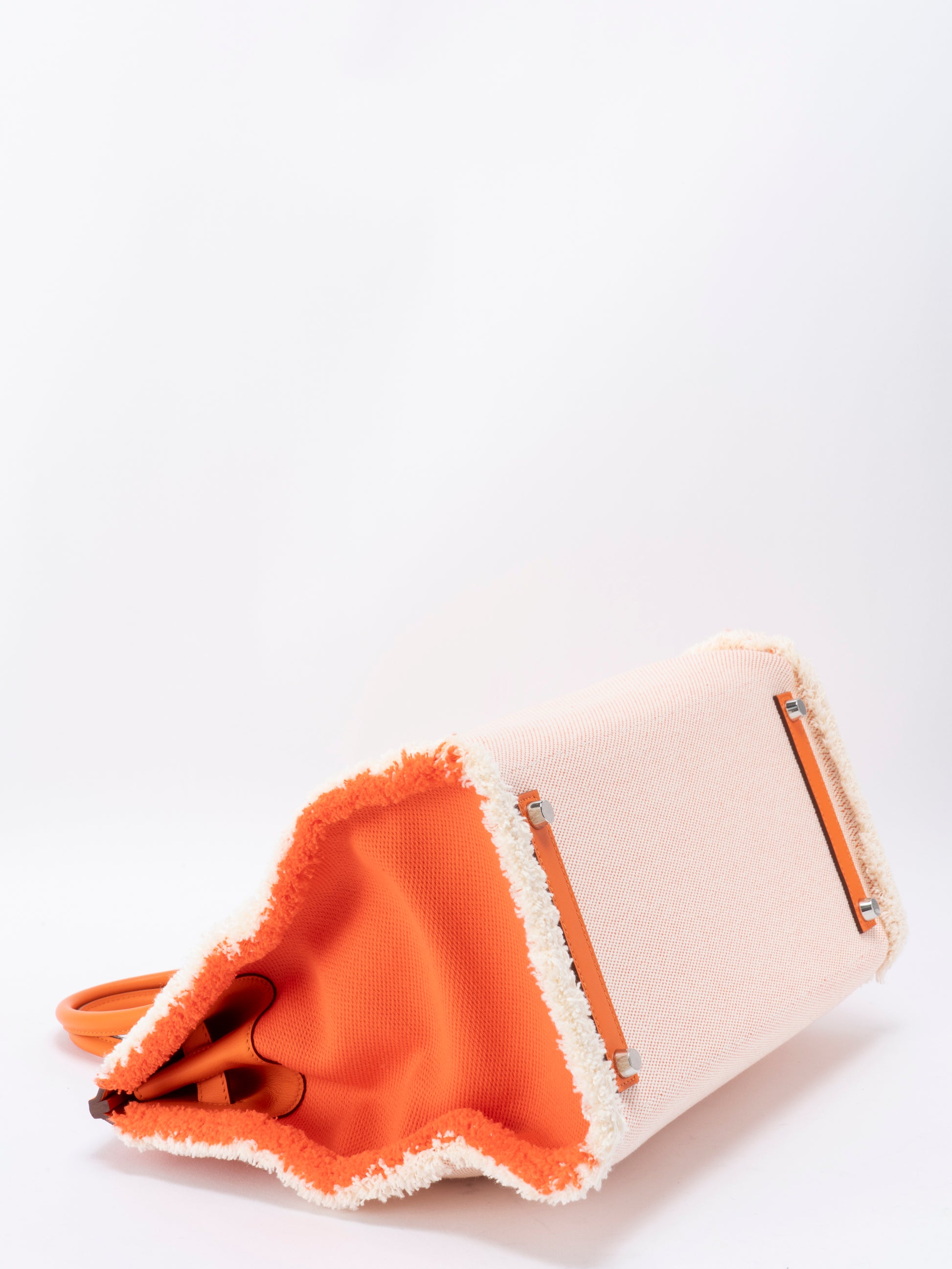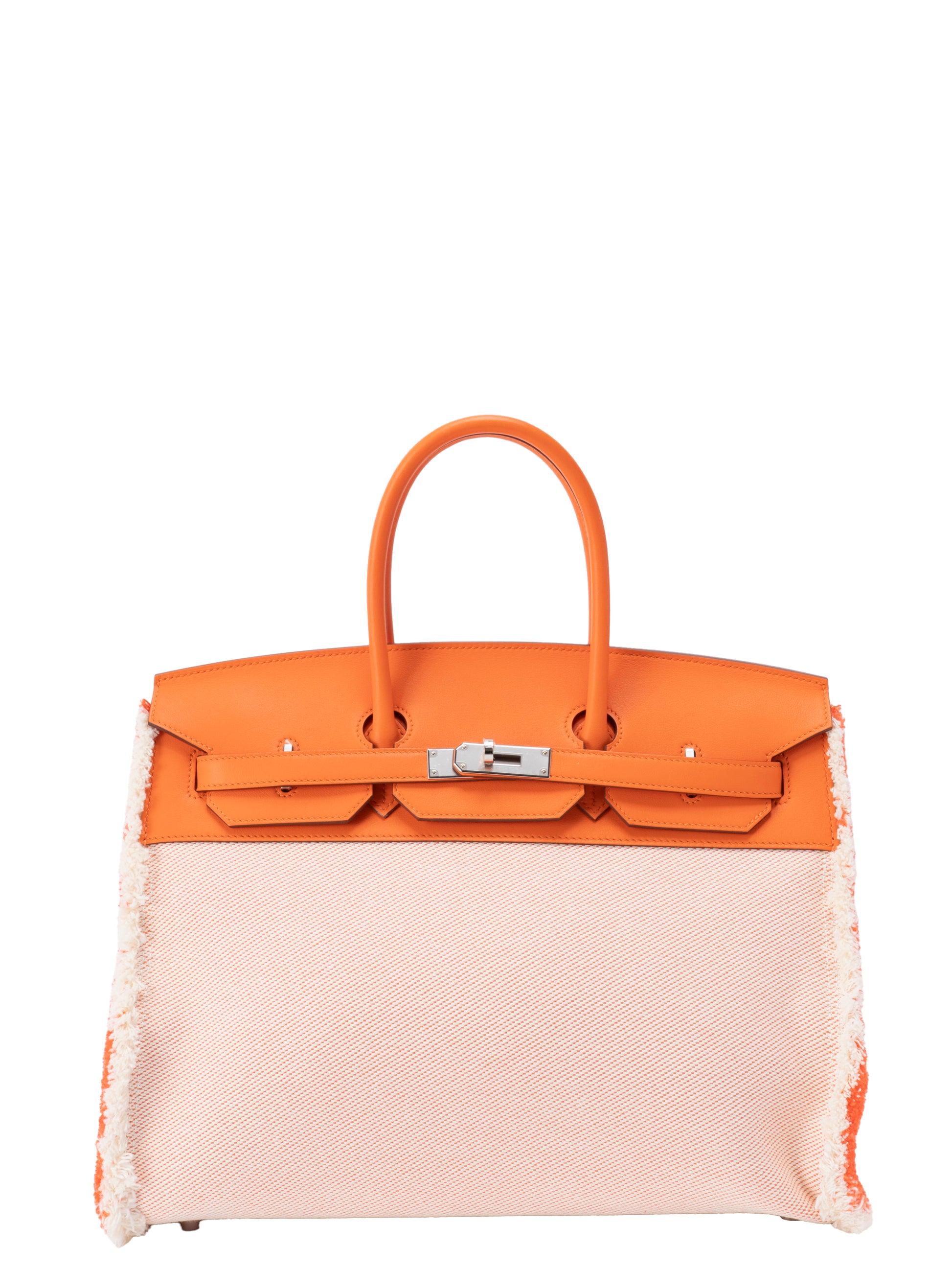 エルメス バーキン35 フレイ ハンドバッグ B刻:2023年 ツイルアッシュ×スイフト オレンジミニアム0X シルバー金具