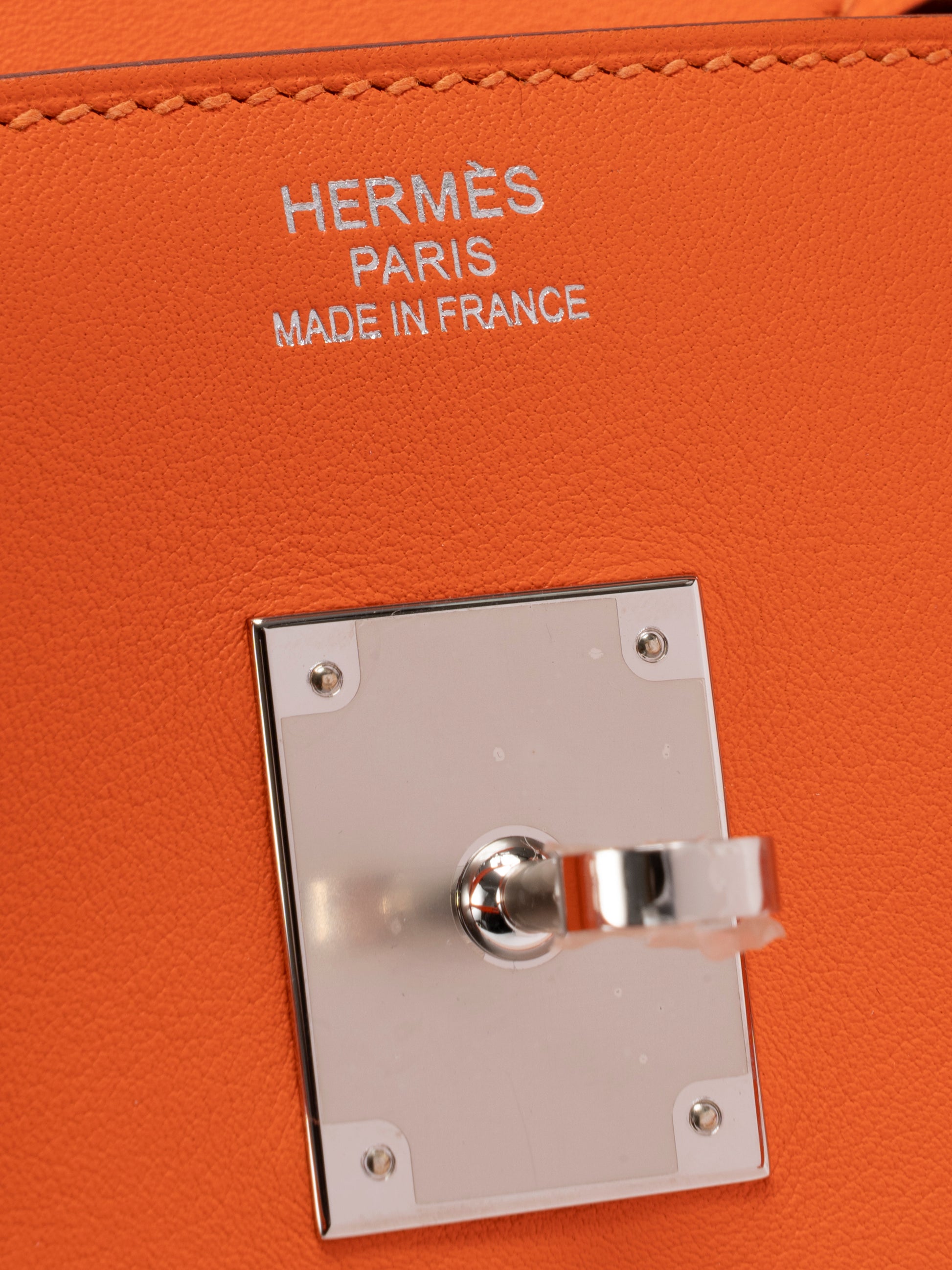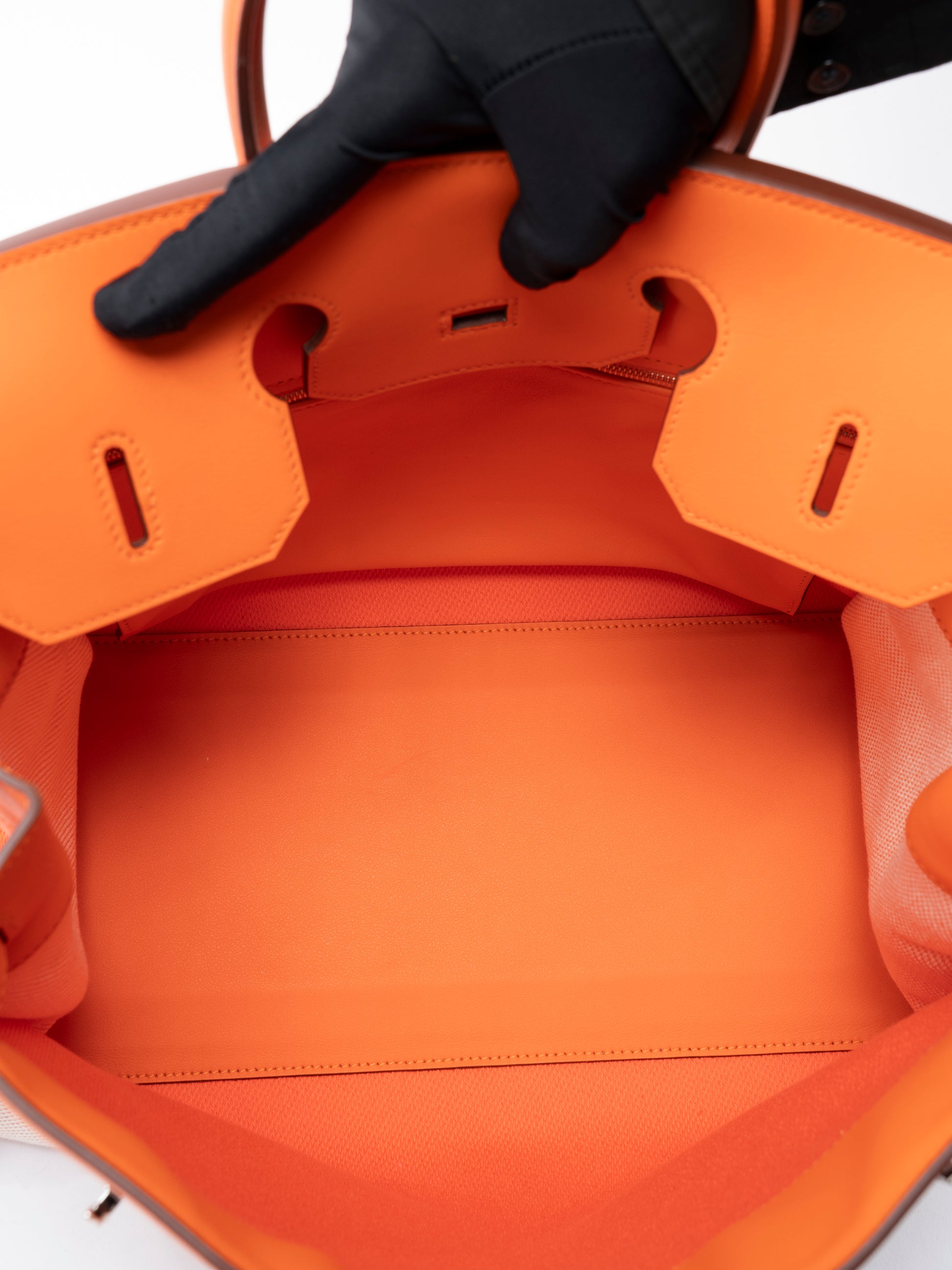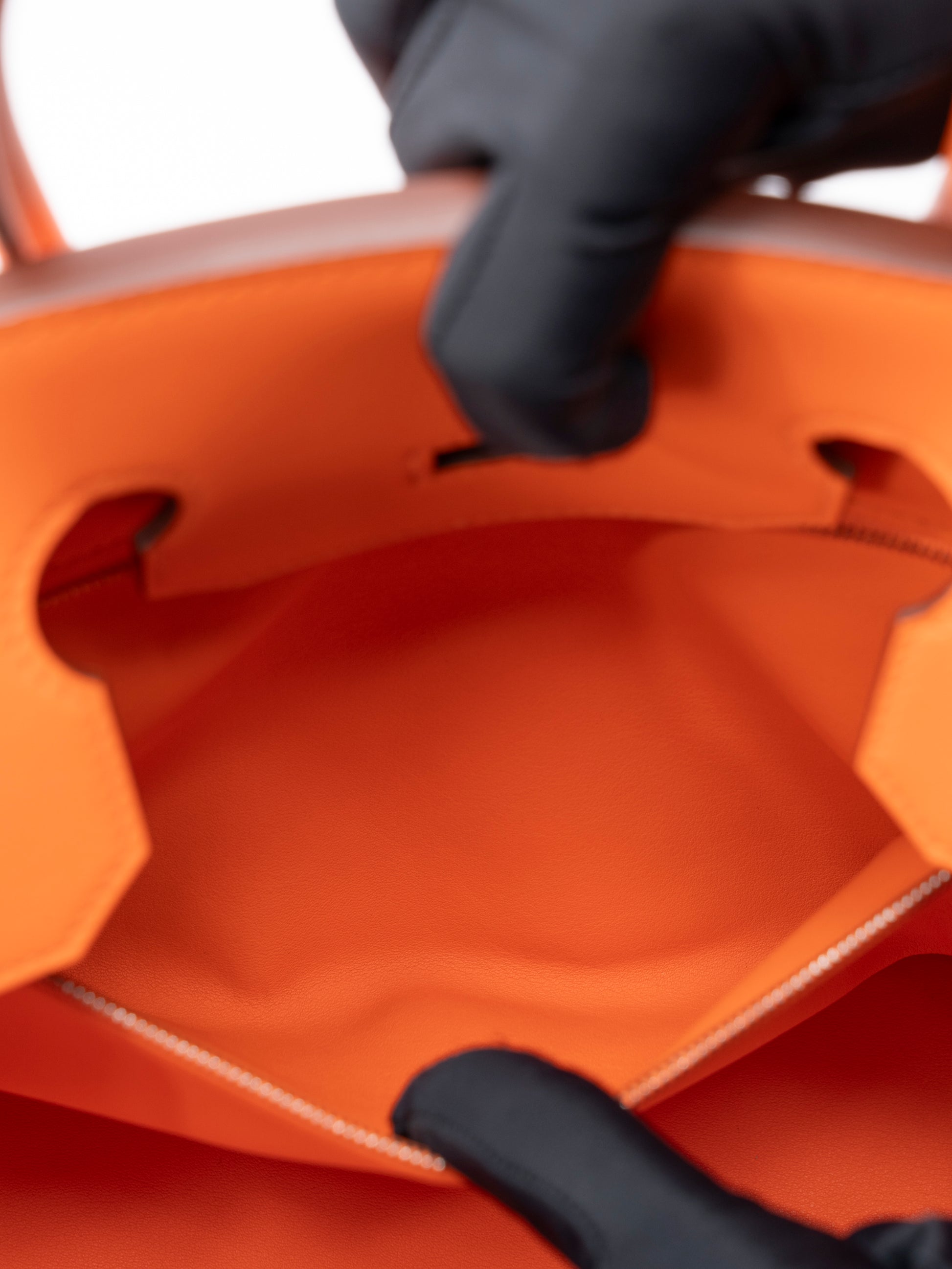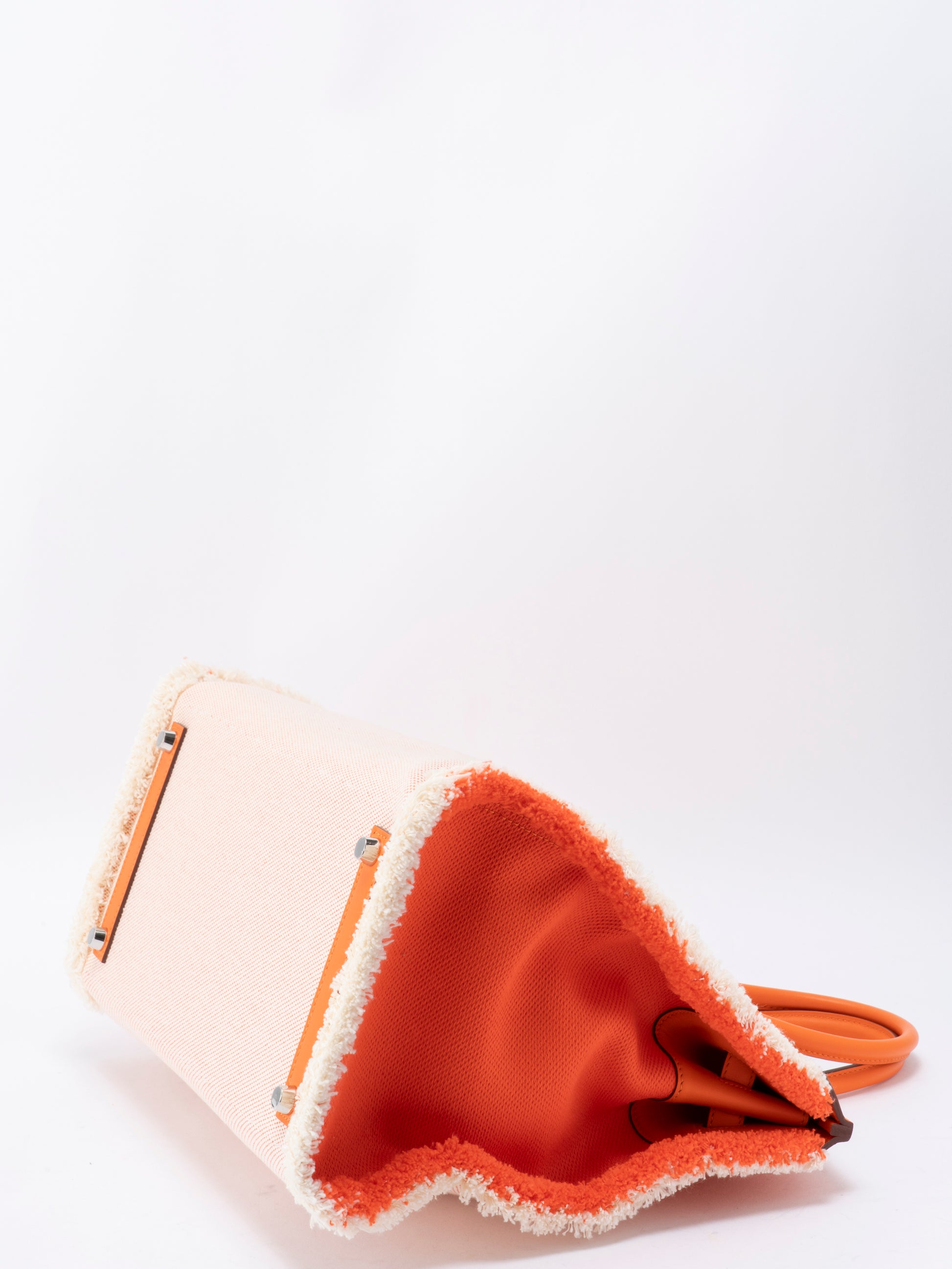 エルメス バーキン35 フレイ ハンドバッグ B刻:2023年 ツイルアッシュ×スイフト オレンジミニアム0X シルバー金具