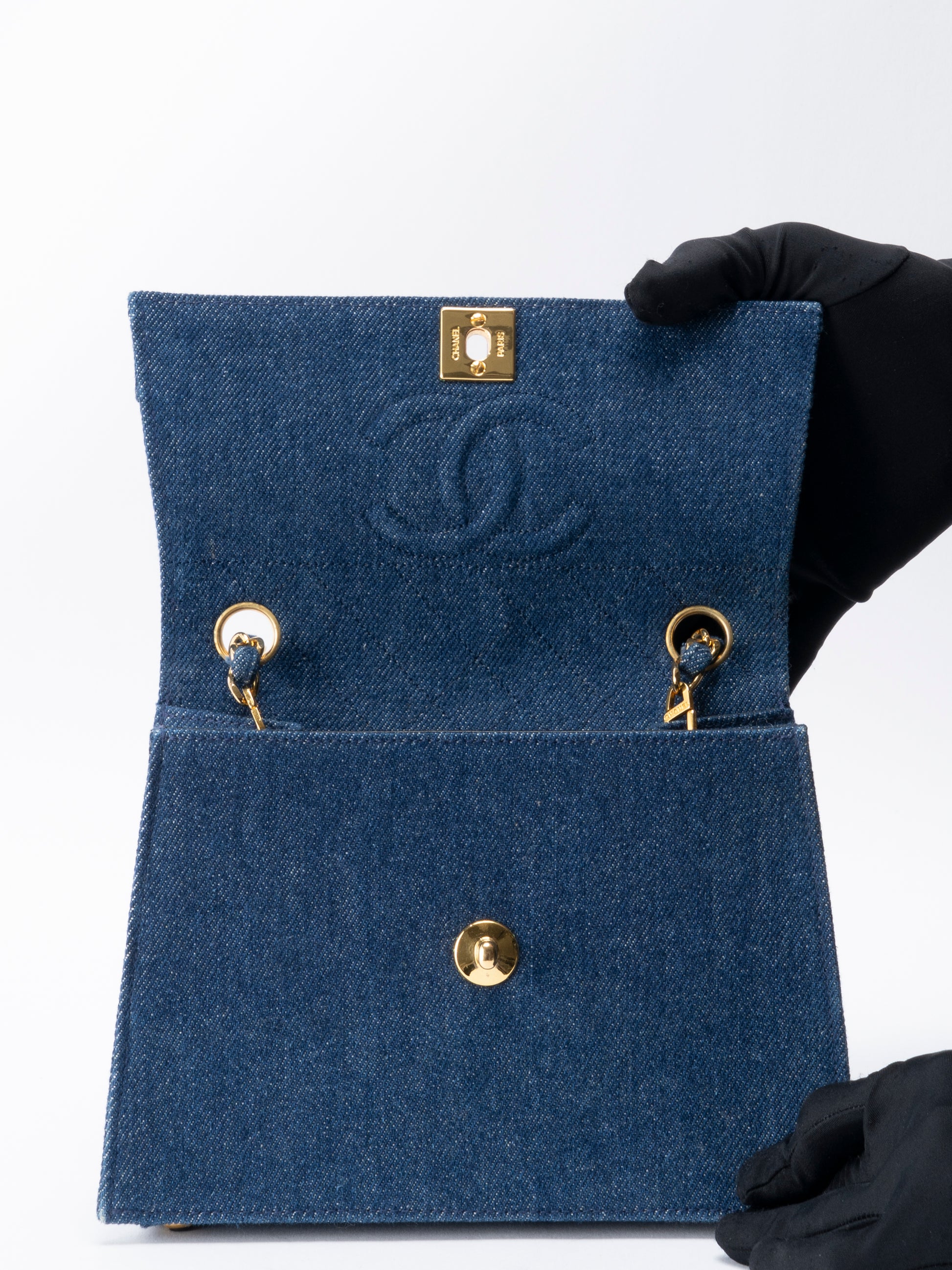 シャネル ココマーク チェーンショルダーバッグ デニム ブルー ゴールド金具