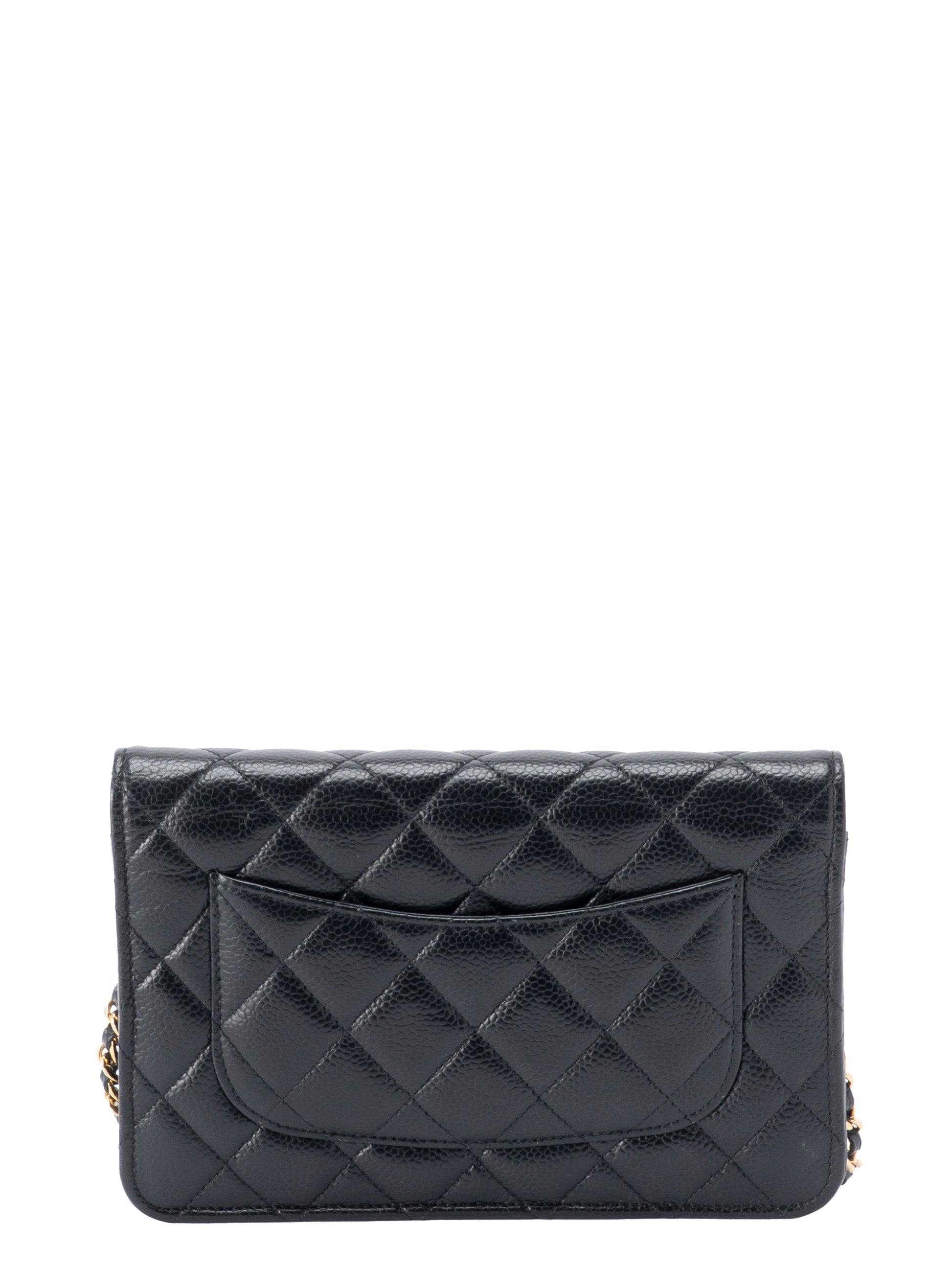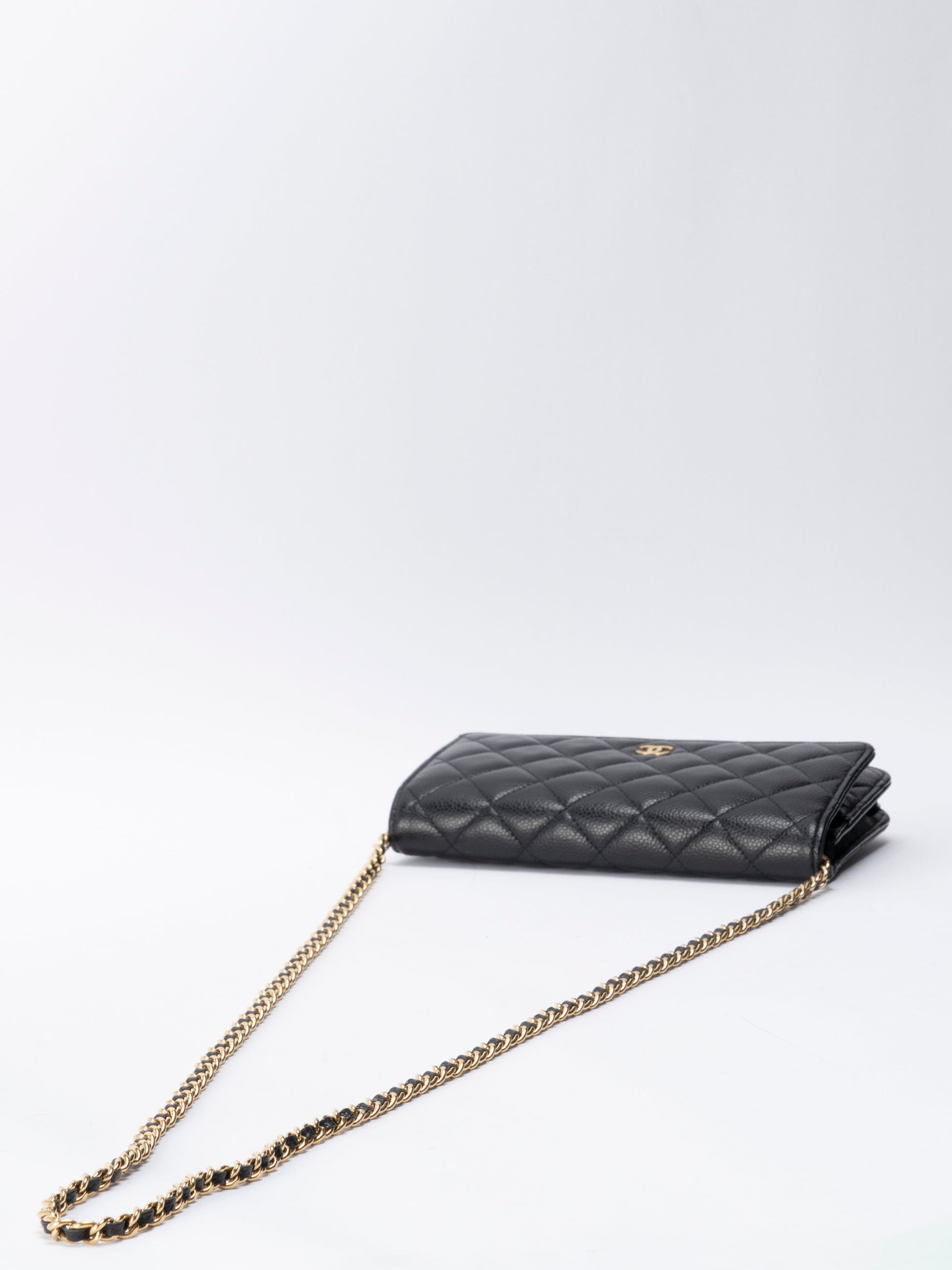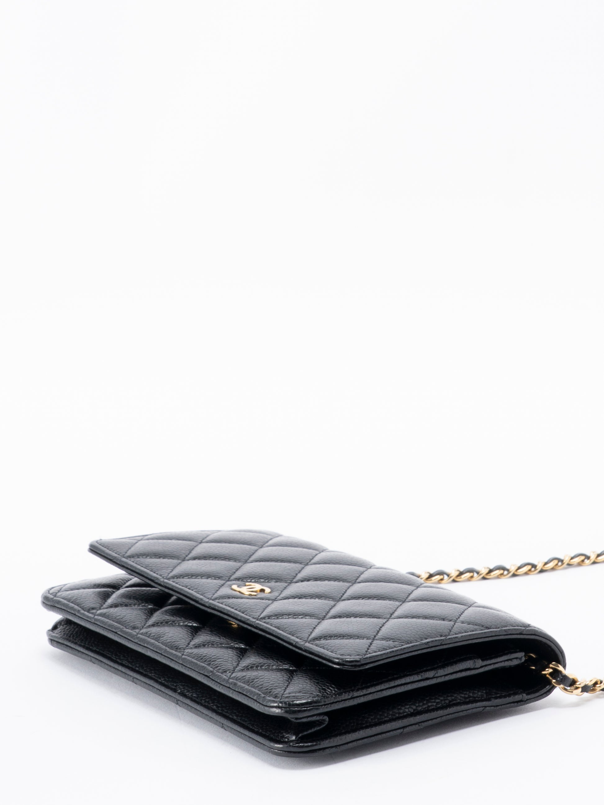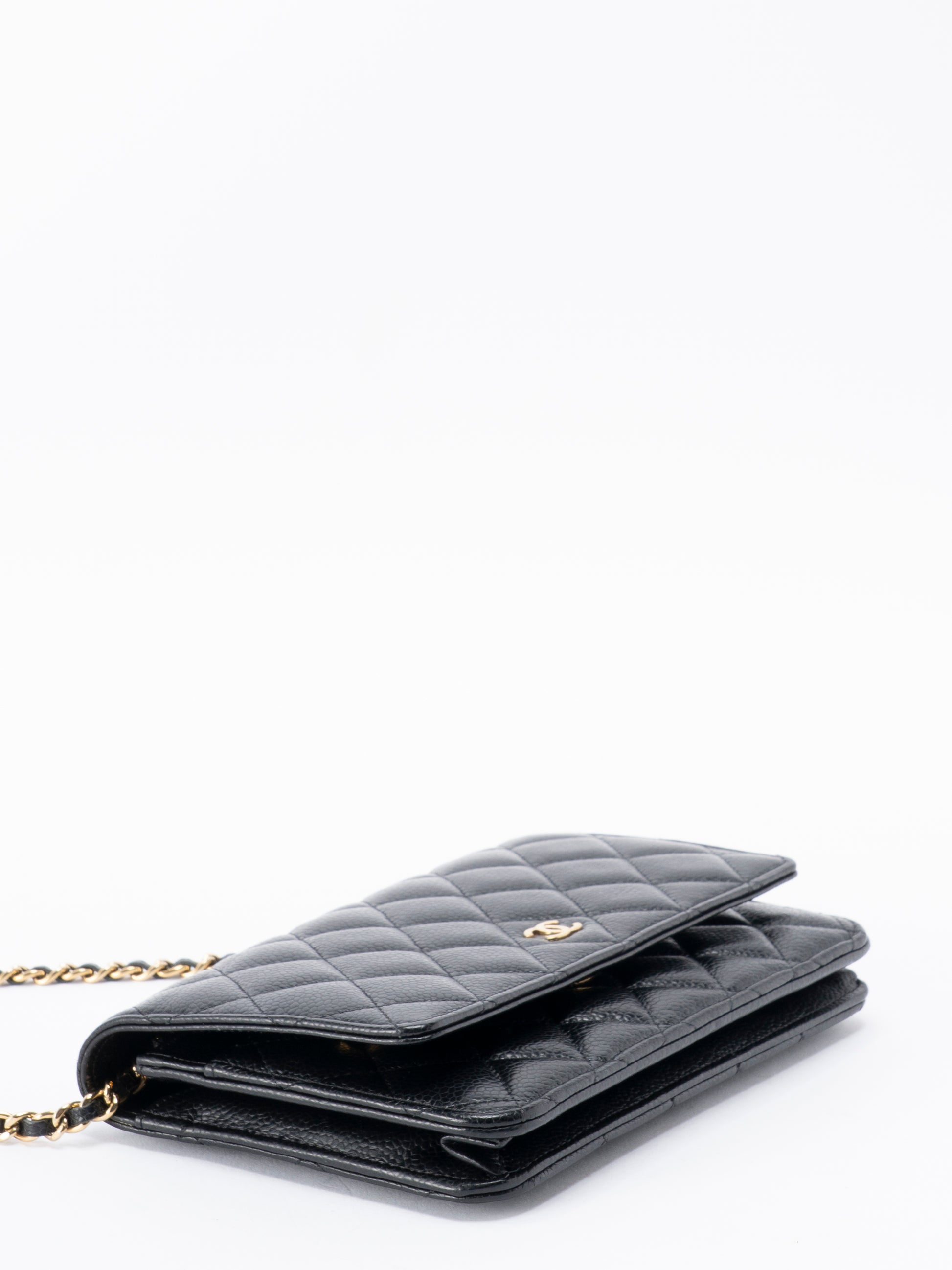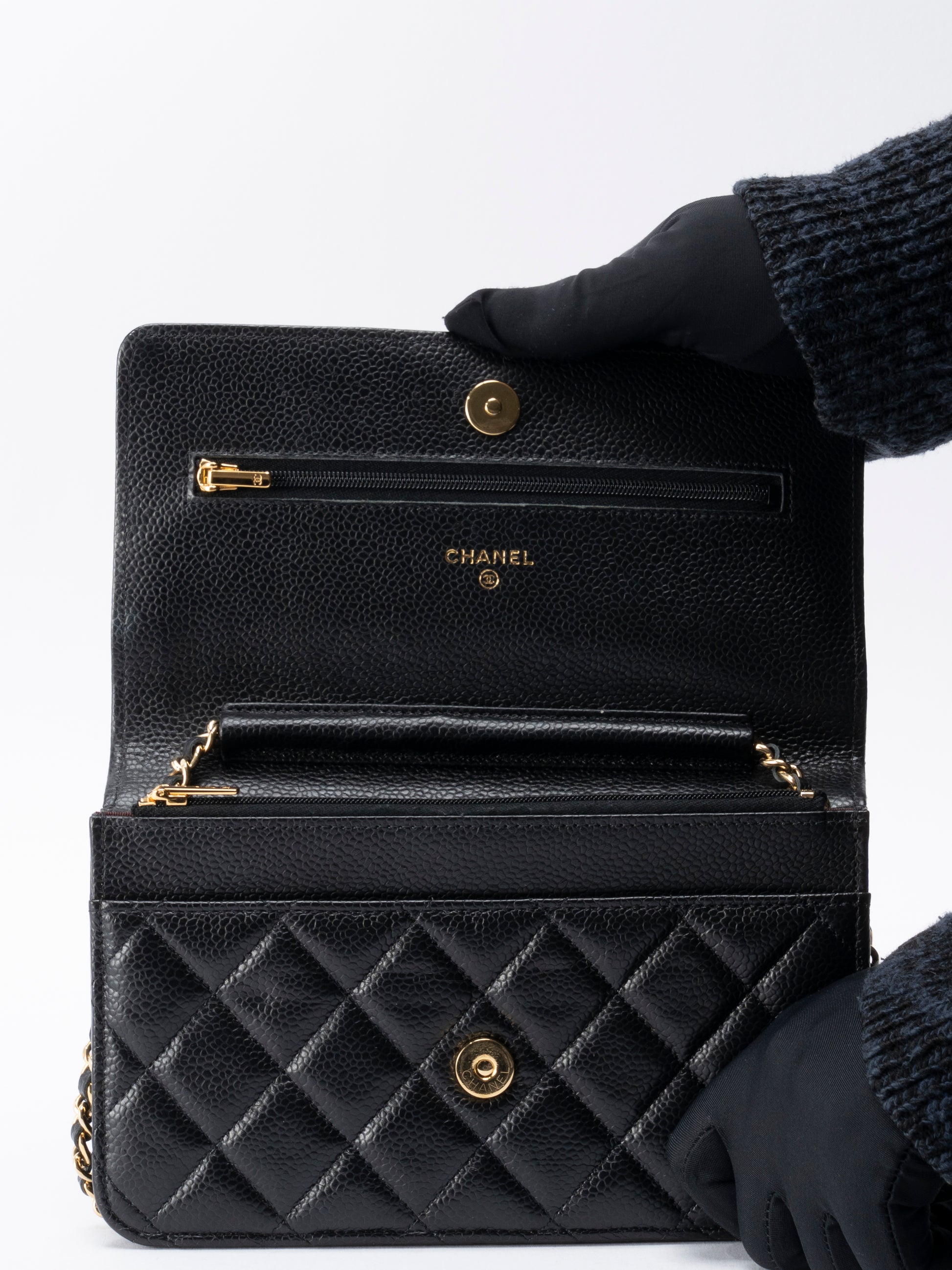 シャネル マトラッセ シリアルプレート チェーンウォレット キャビアスキン ブラック ゴールド金具
