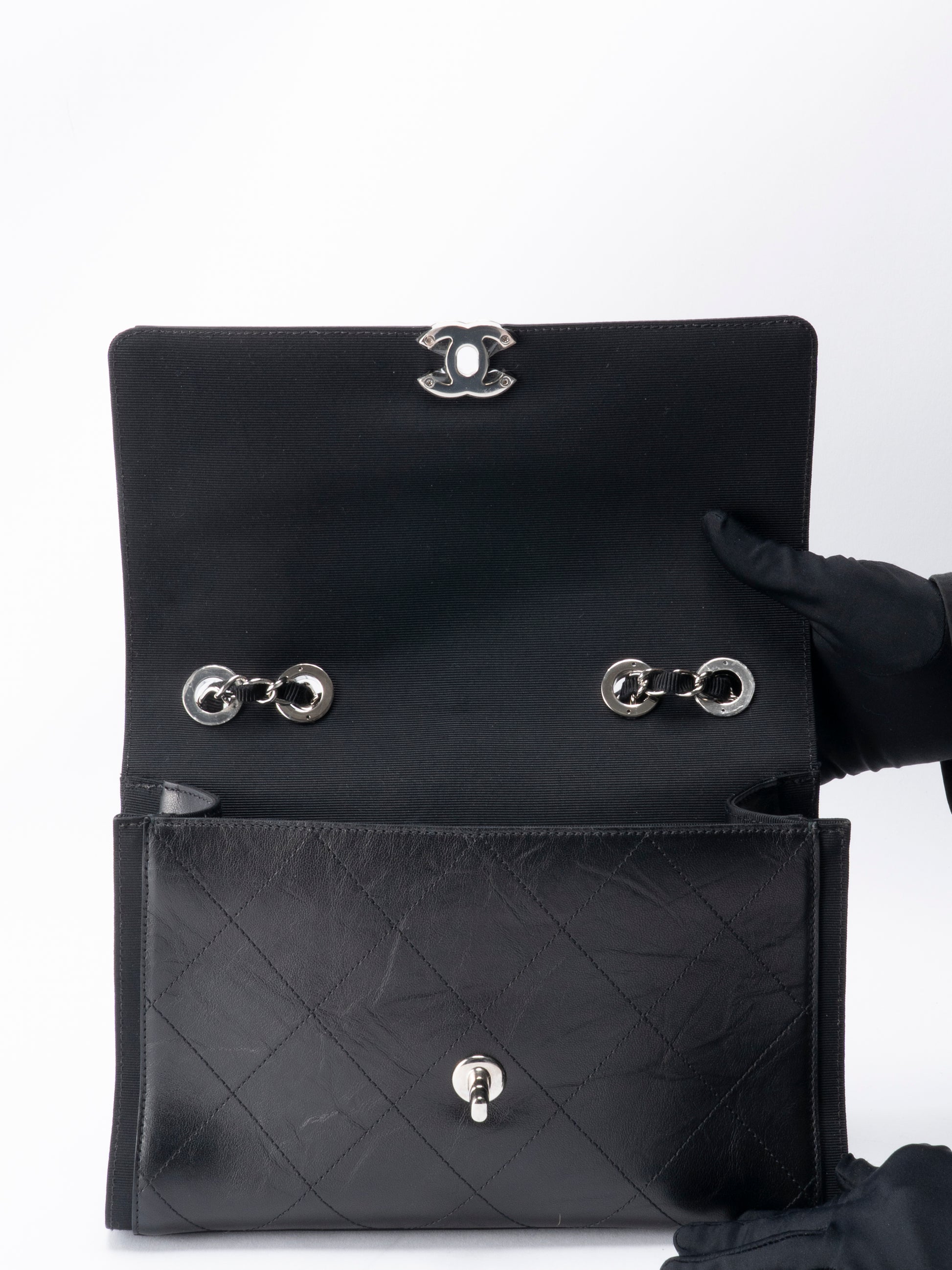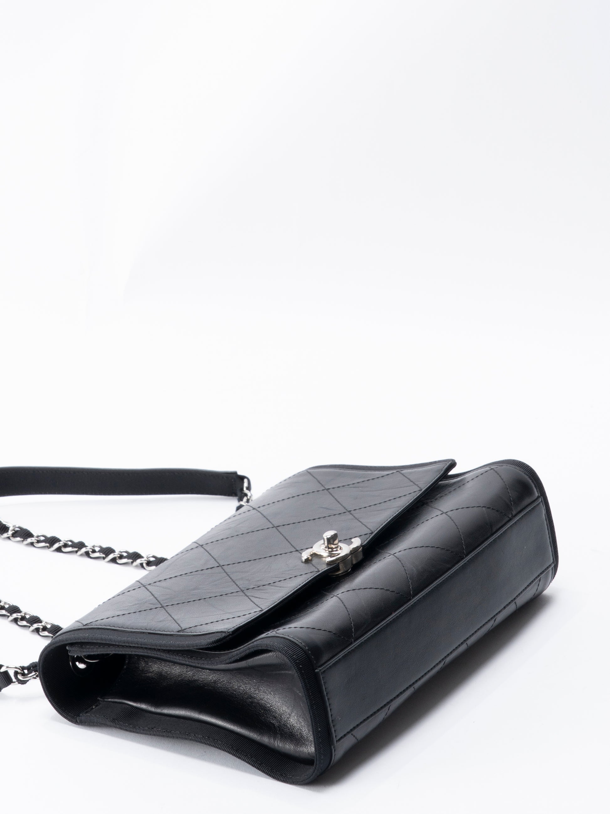 シャネル マトラッセ シングルフラップチェーンショルダーバッグ カーフスキン ブラック シルバー金具