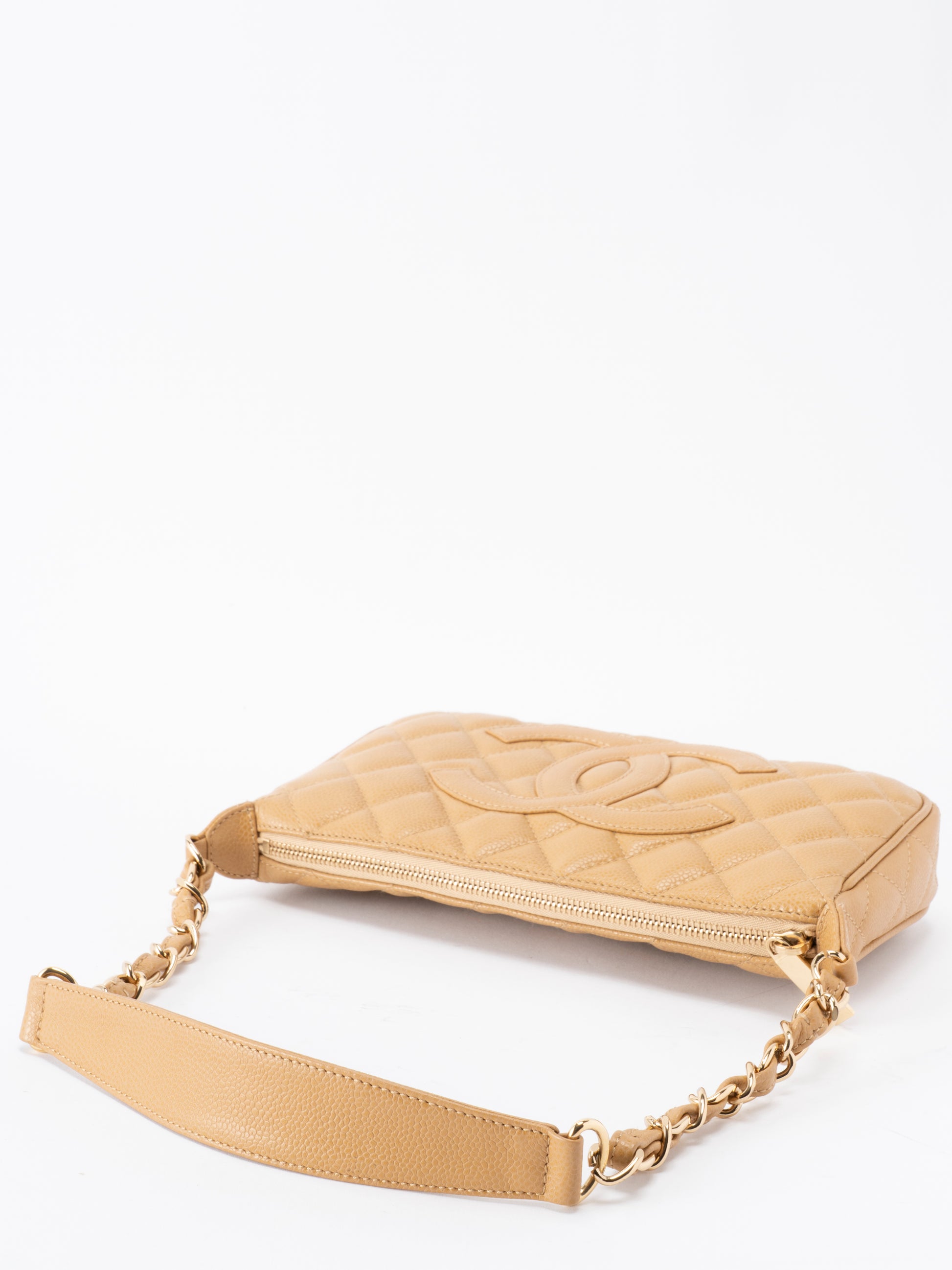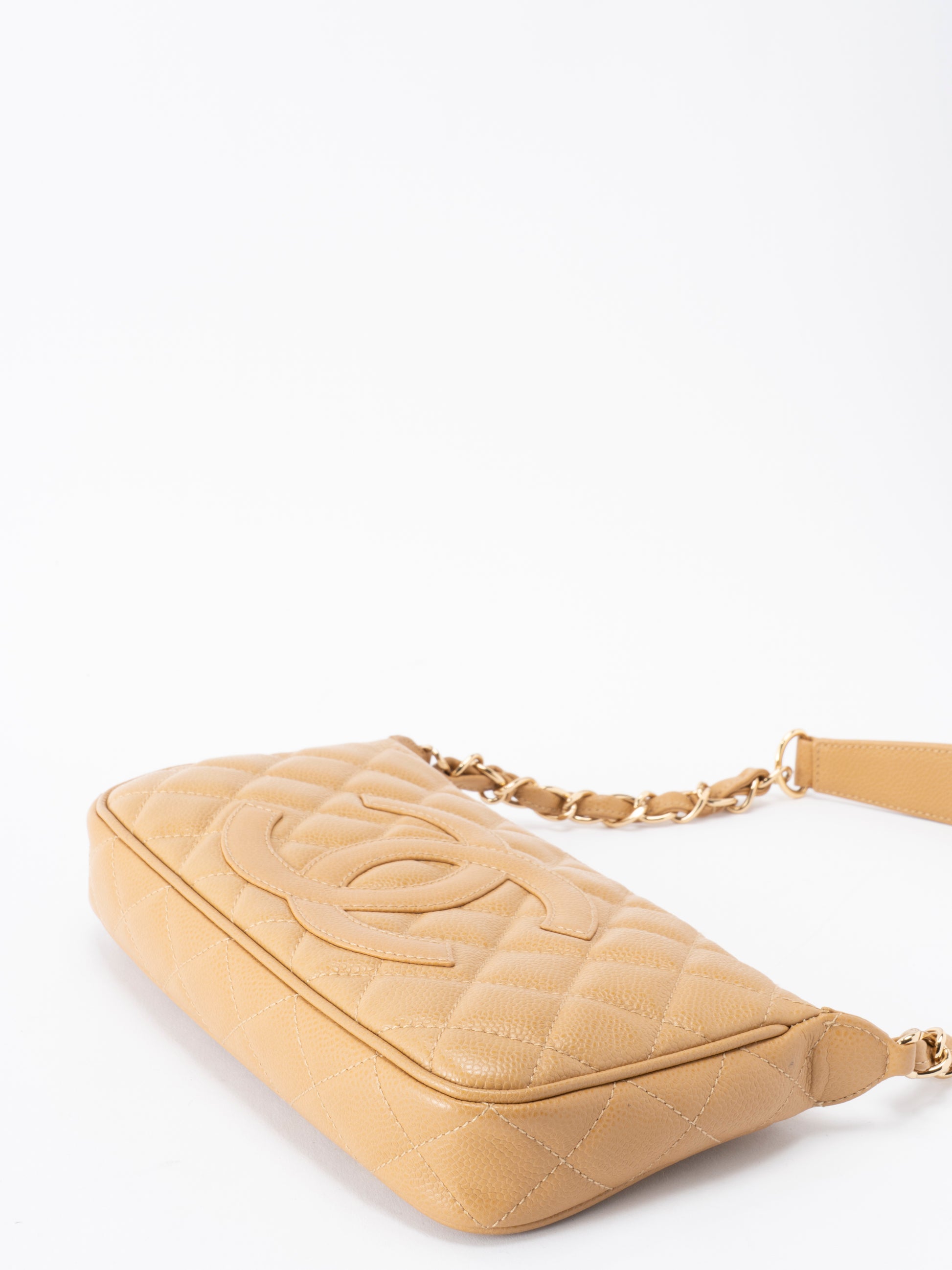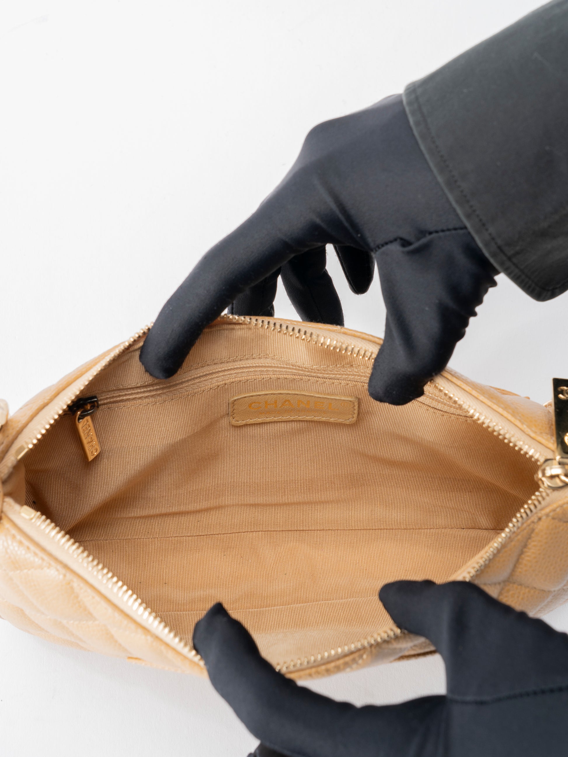 シャネル マトラッセ チェーンショルダーバッグ キャビアスキン ベージュ ゴールド金具