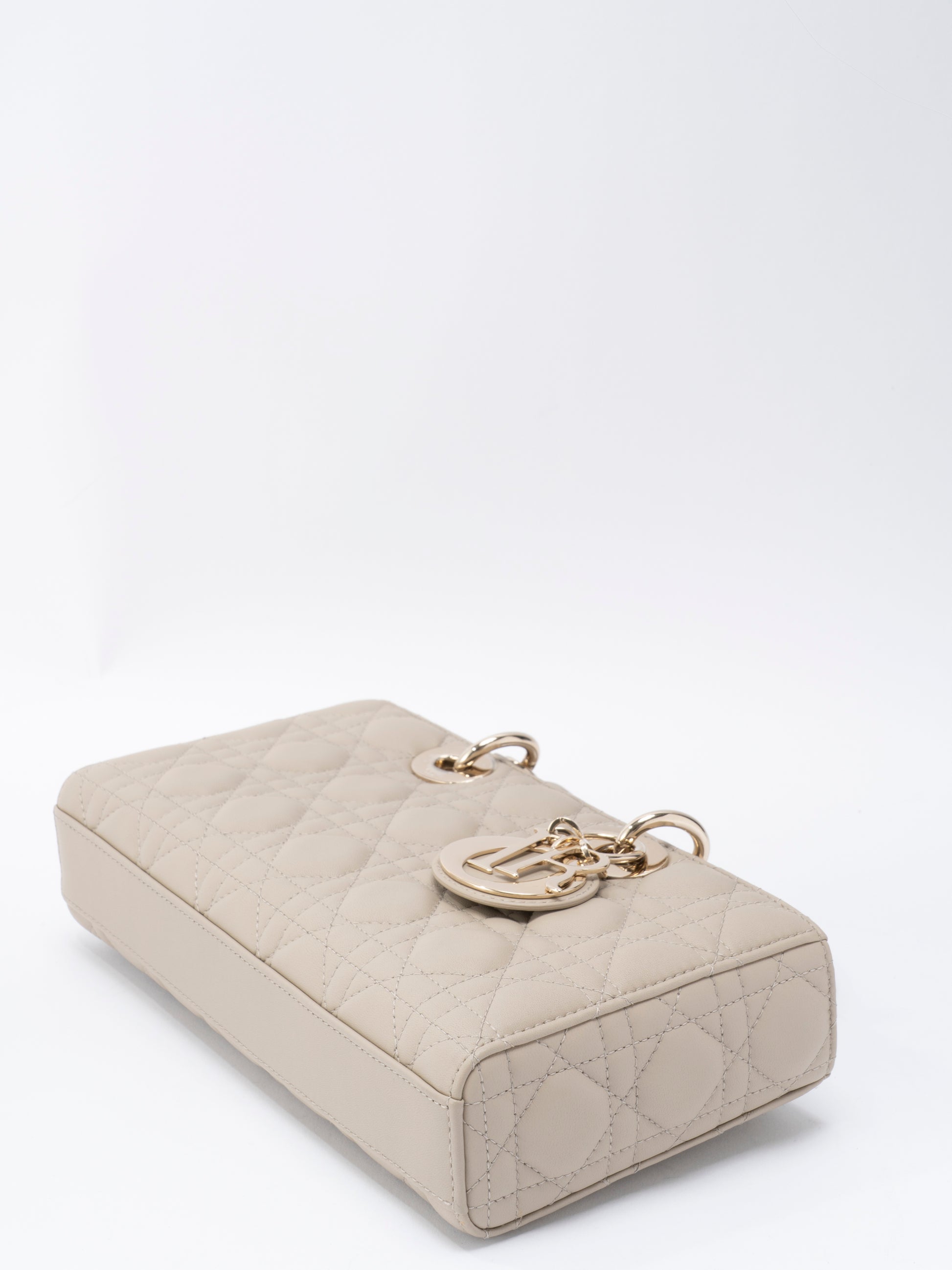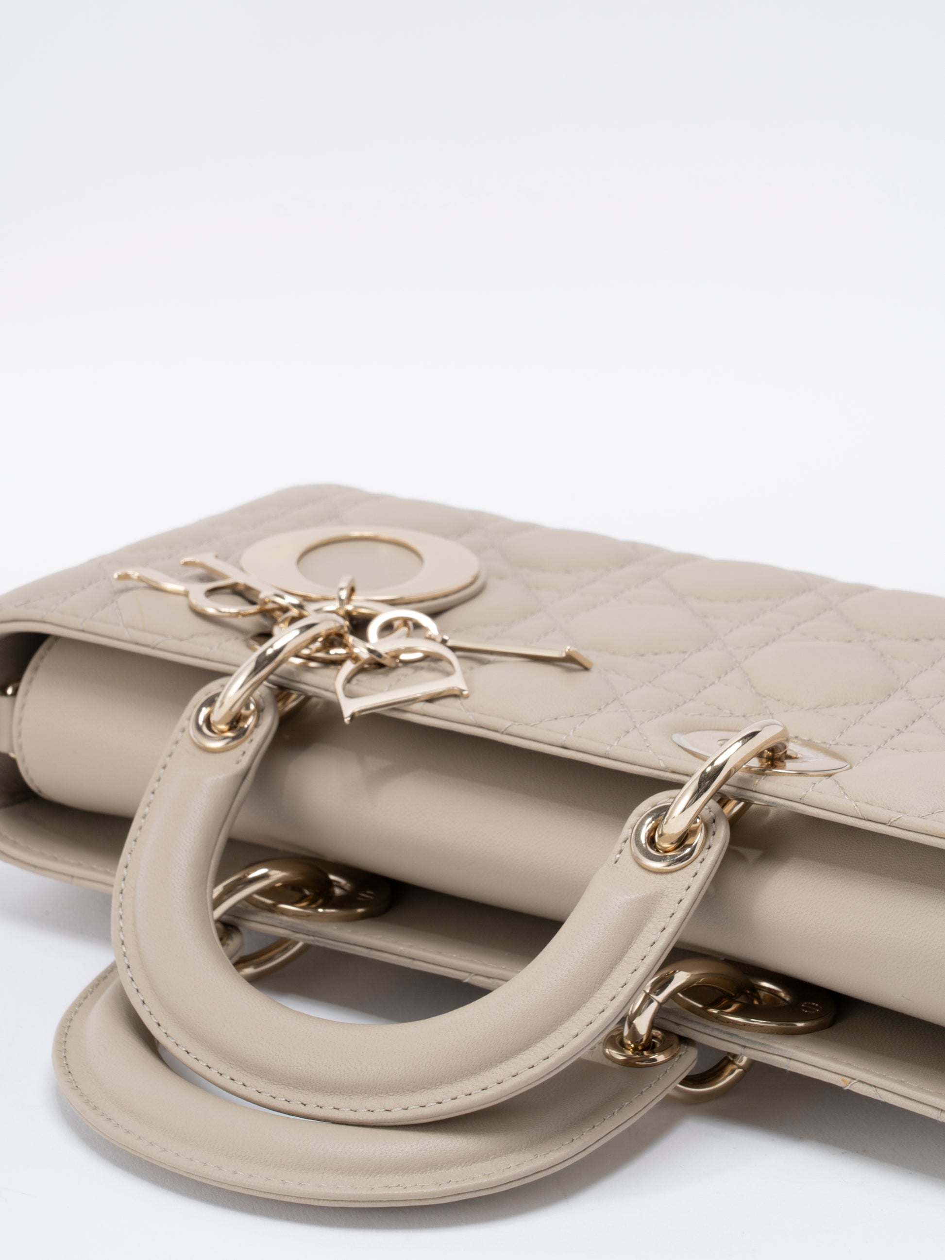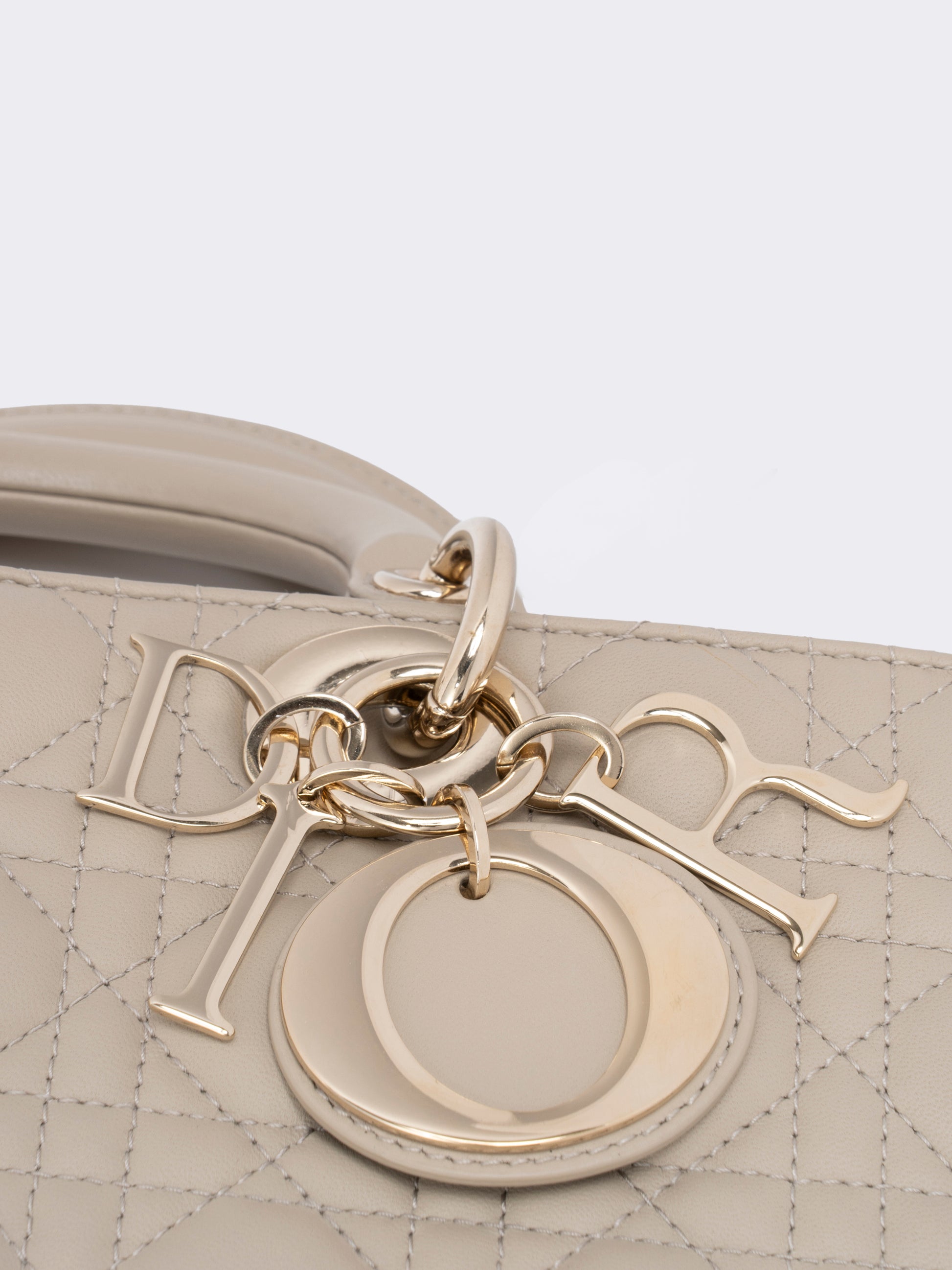 ディオール レディディオール D-Joy カナージュ 2WAYハンドバッグ レザー ベージュ ゴールド金具