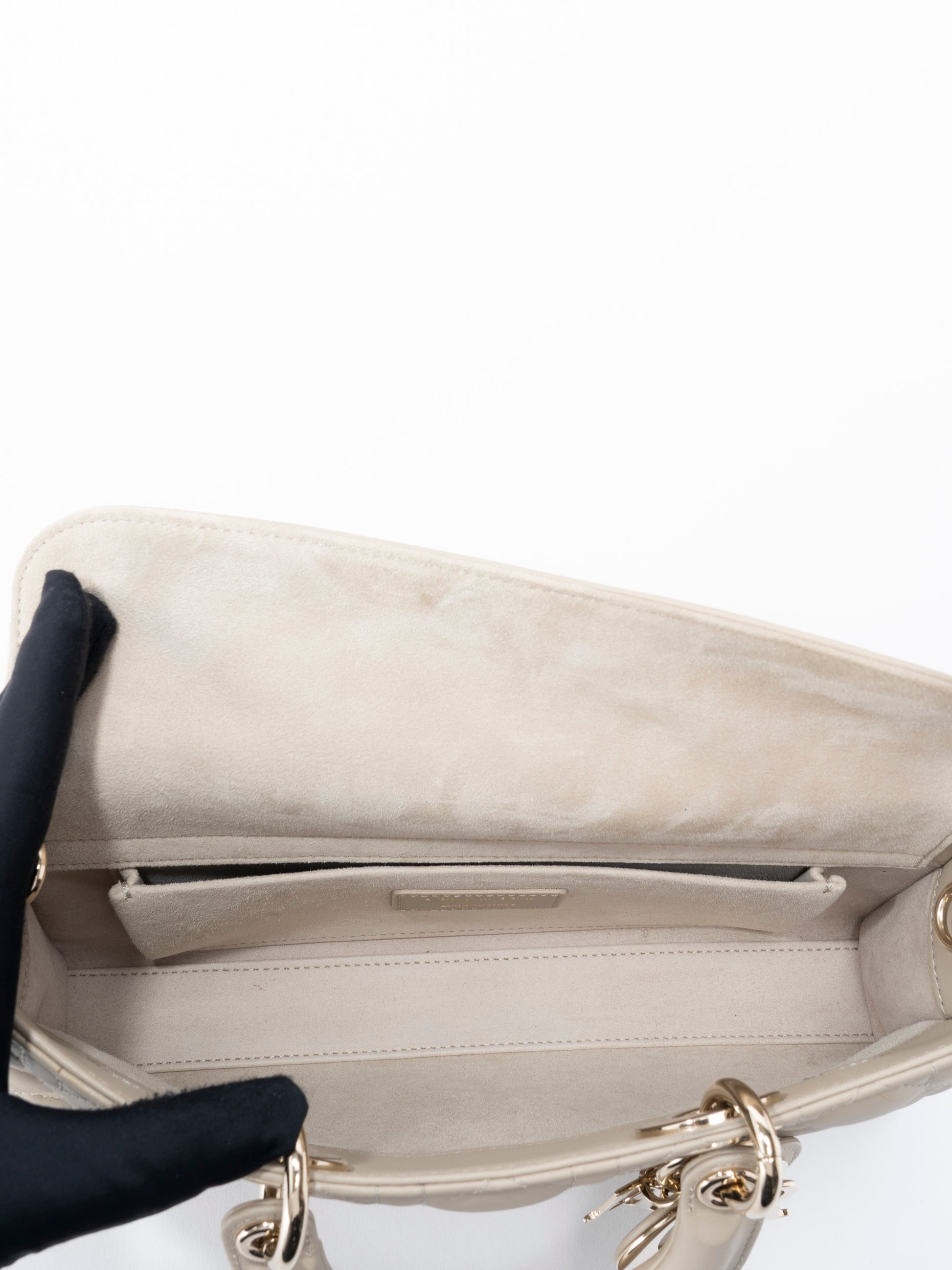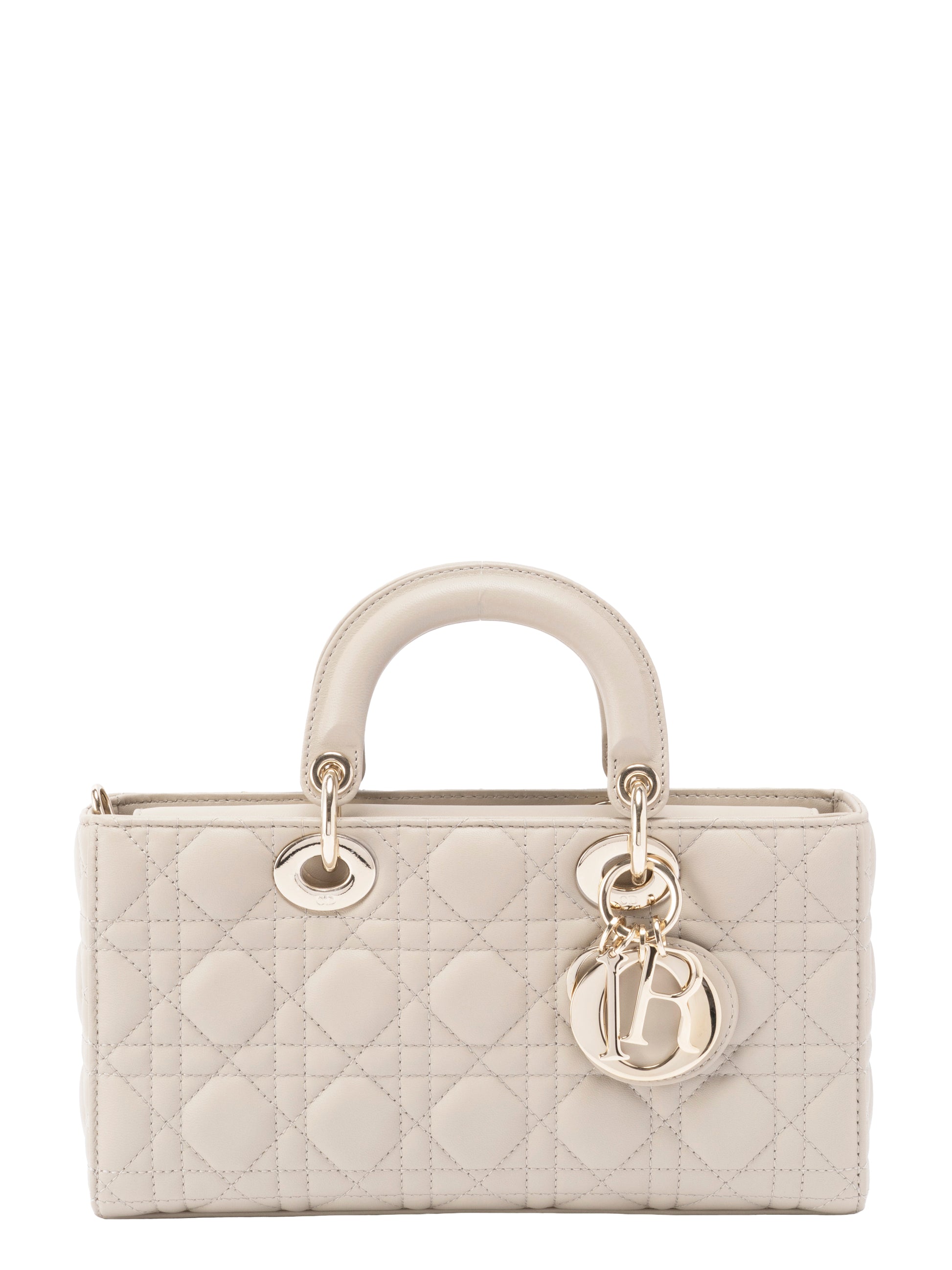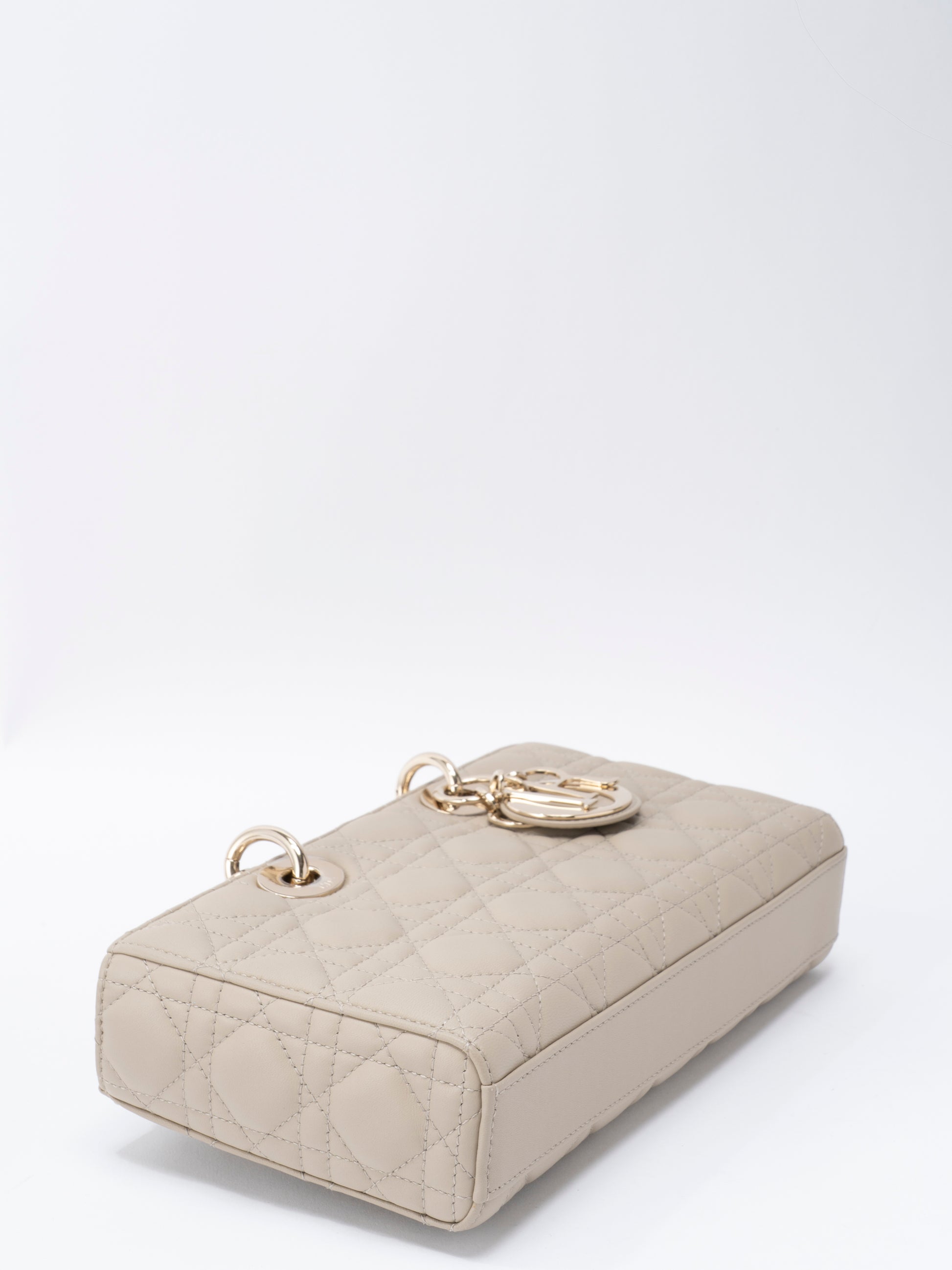 ディオール レディディオール D-Joy カナージュ 2WAYハンドバッグ レザー ベージュ ゴールド金具