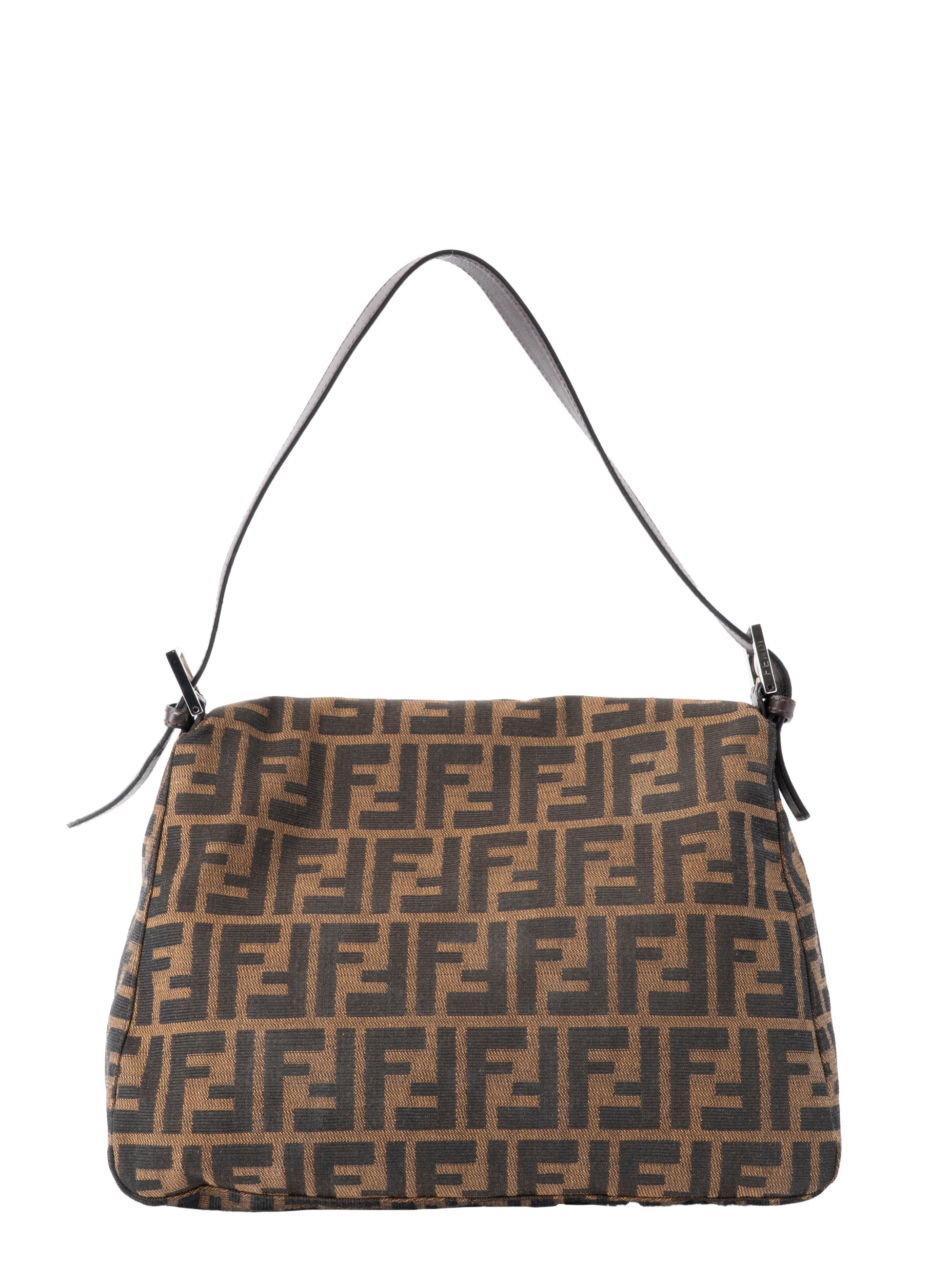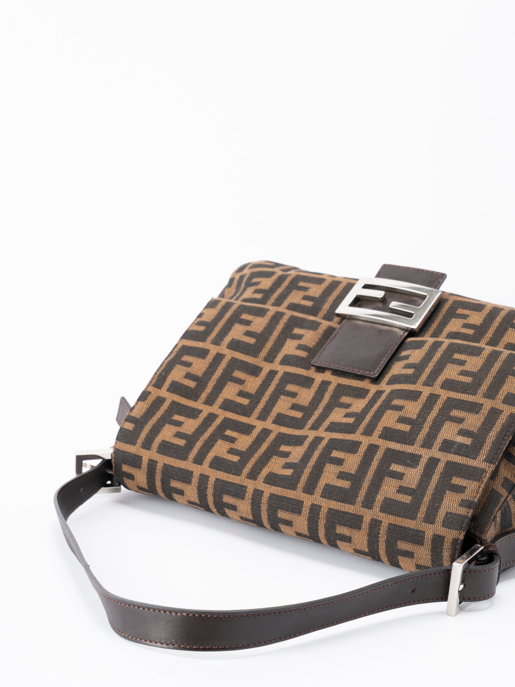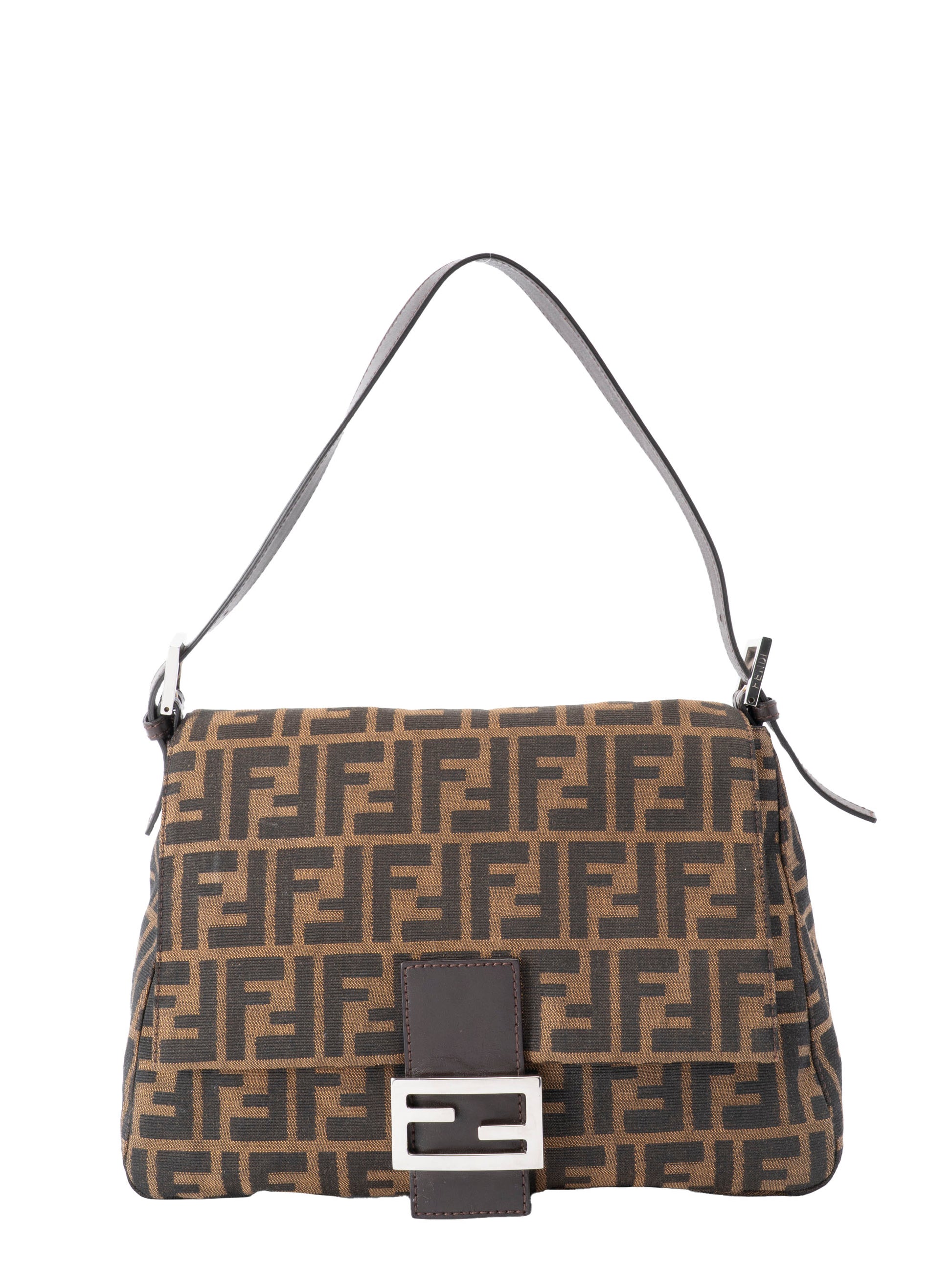 フェンディ ズッカ マンマバケット ショルダーバッグ キャンバス ブラウン シルバー金具