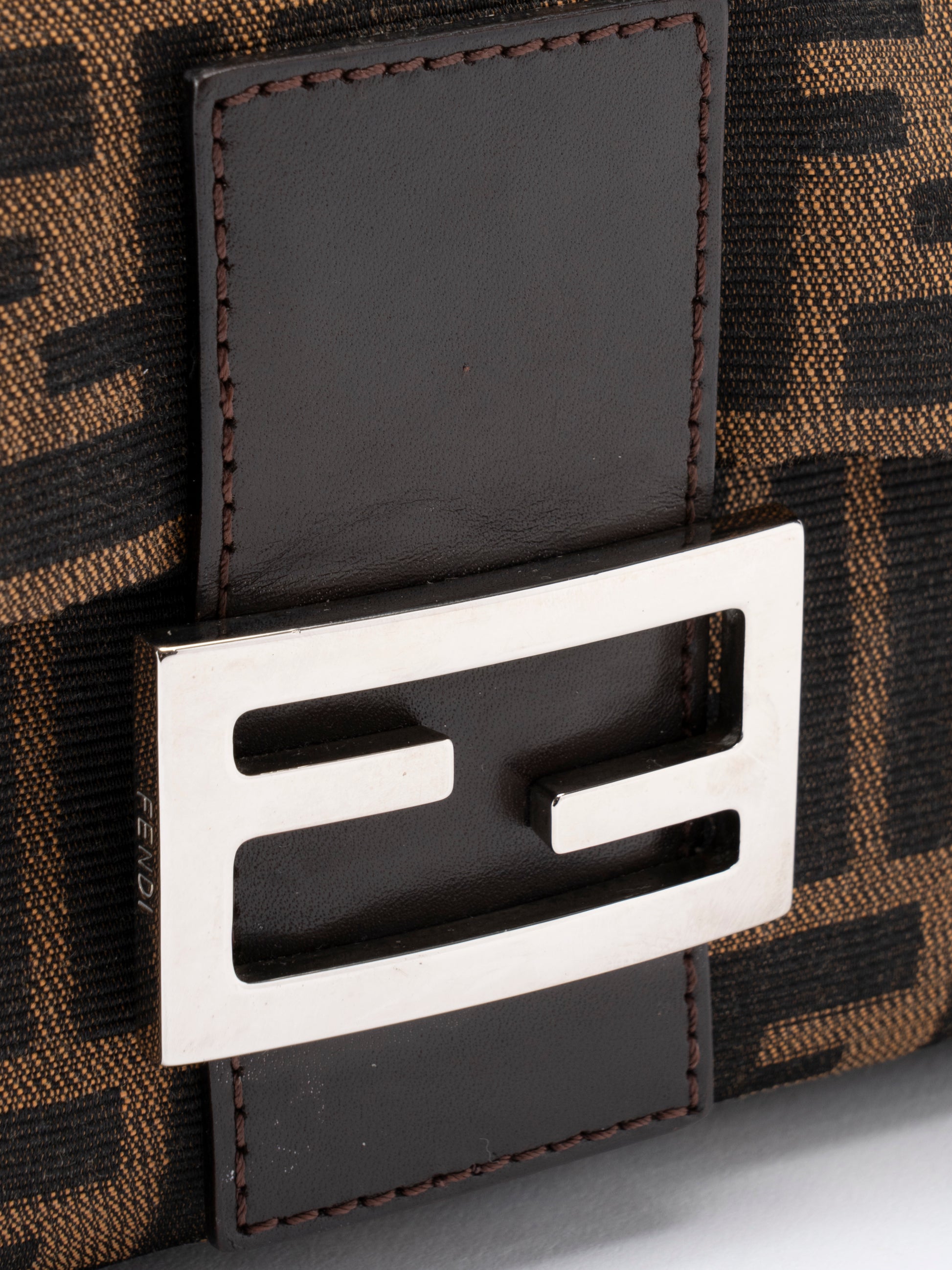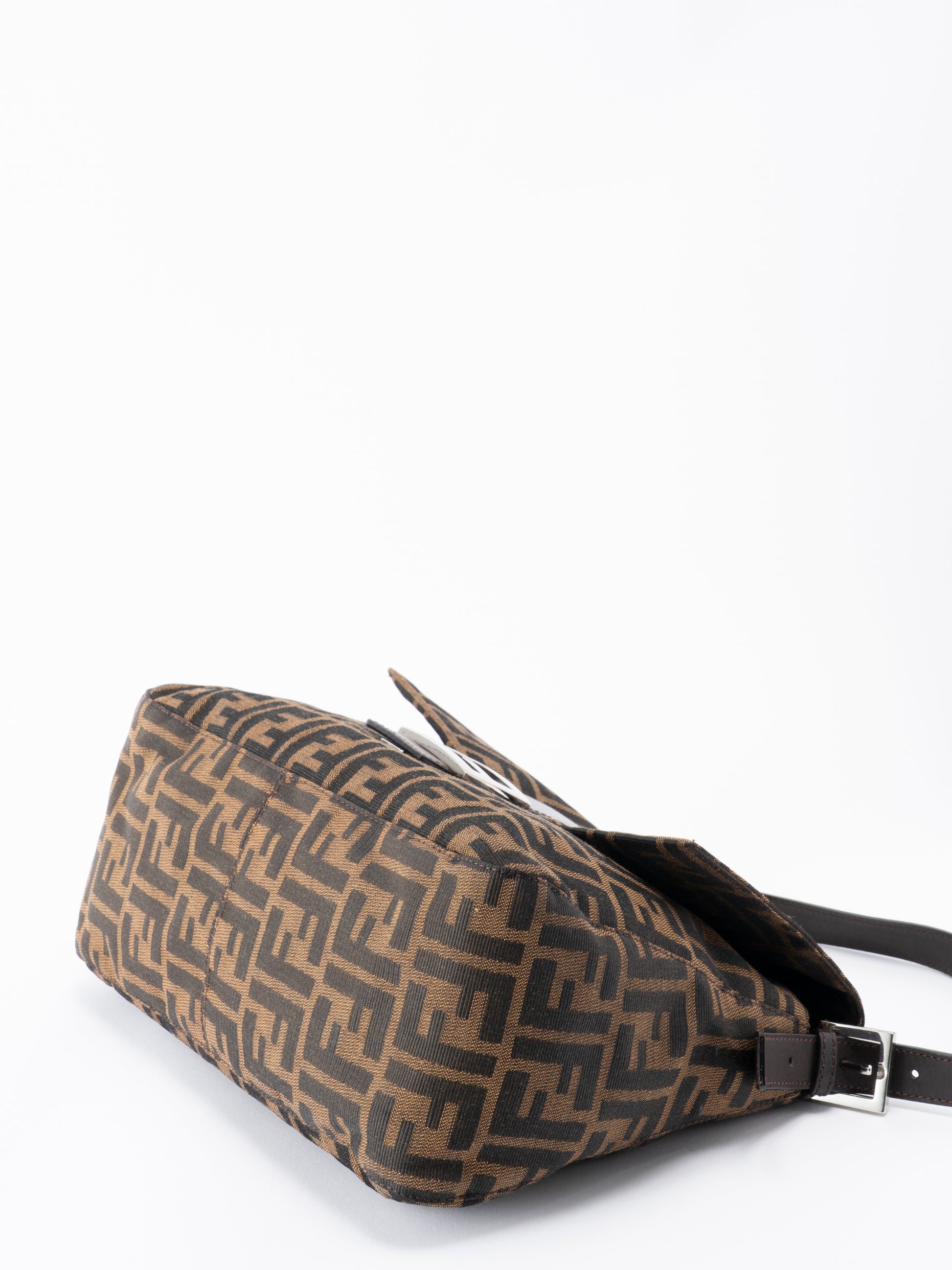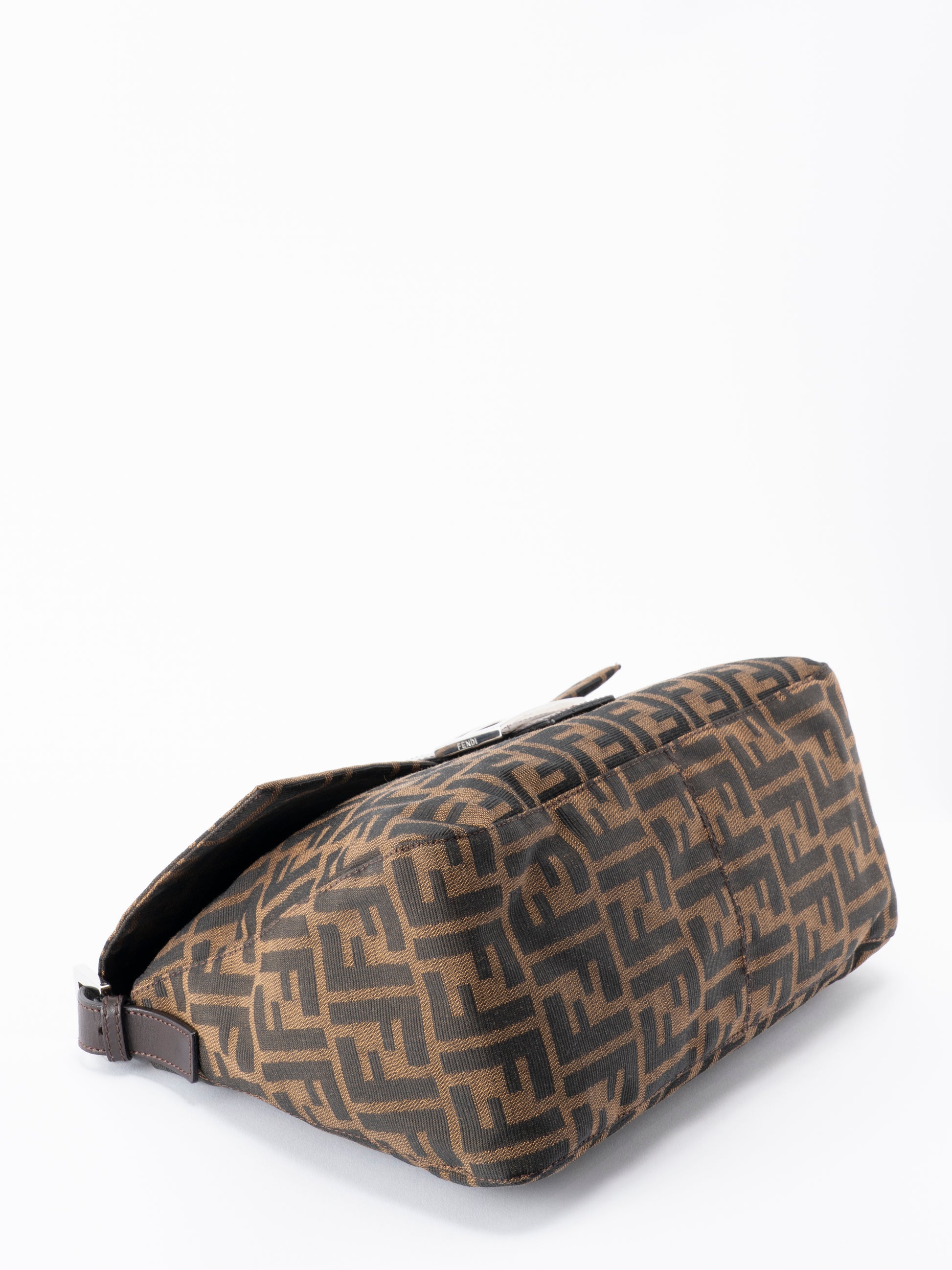 フェンディ ズッカ マンマバケット ショルダーバッグ キャンバス ブラウン シルバー金具