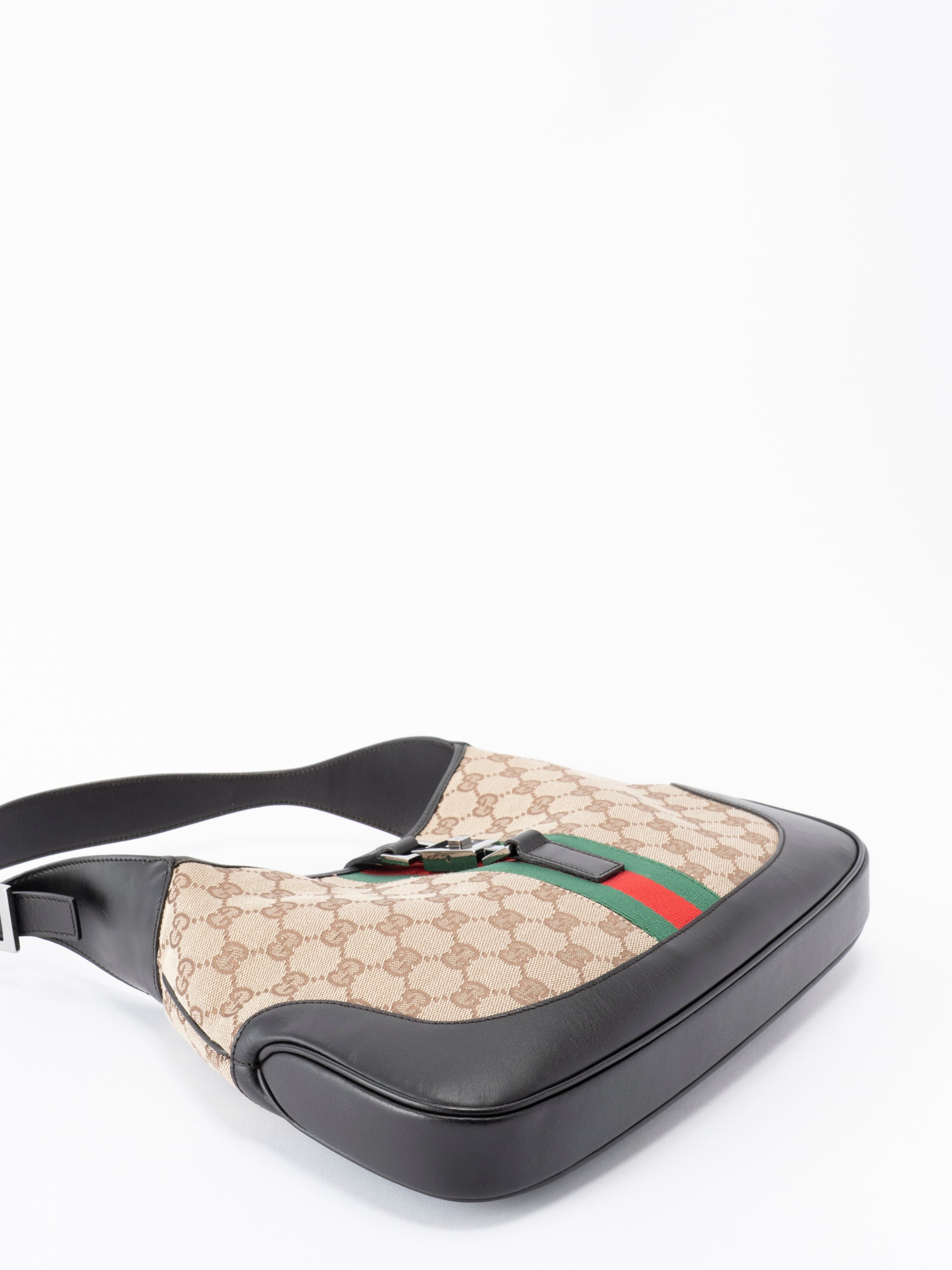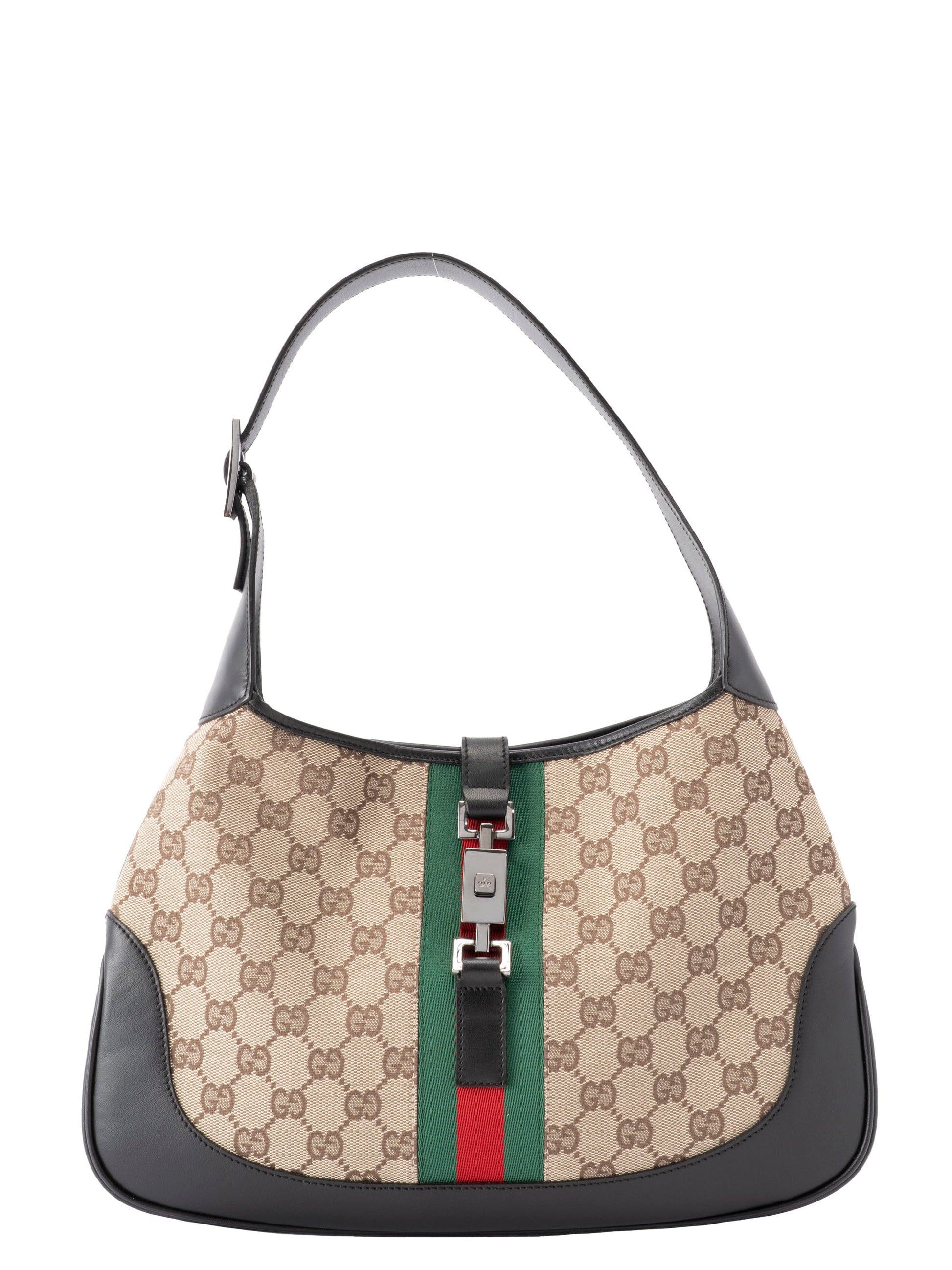 グッチ ジャッキー GGキャンバス シェリーライン ショルダーバッグ キャンバス ベージュ×ブラウン ゴールド金具