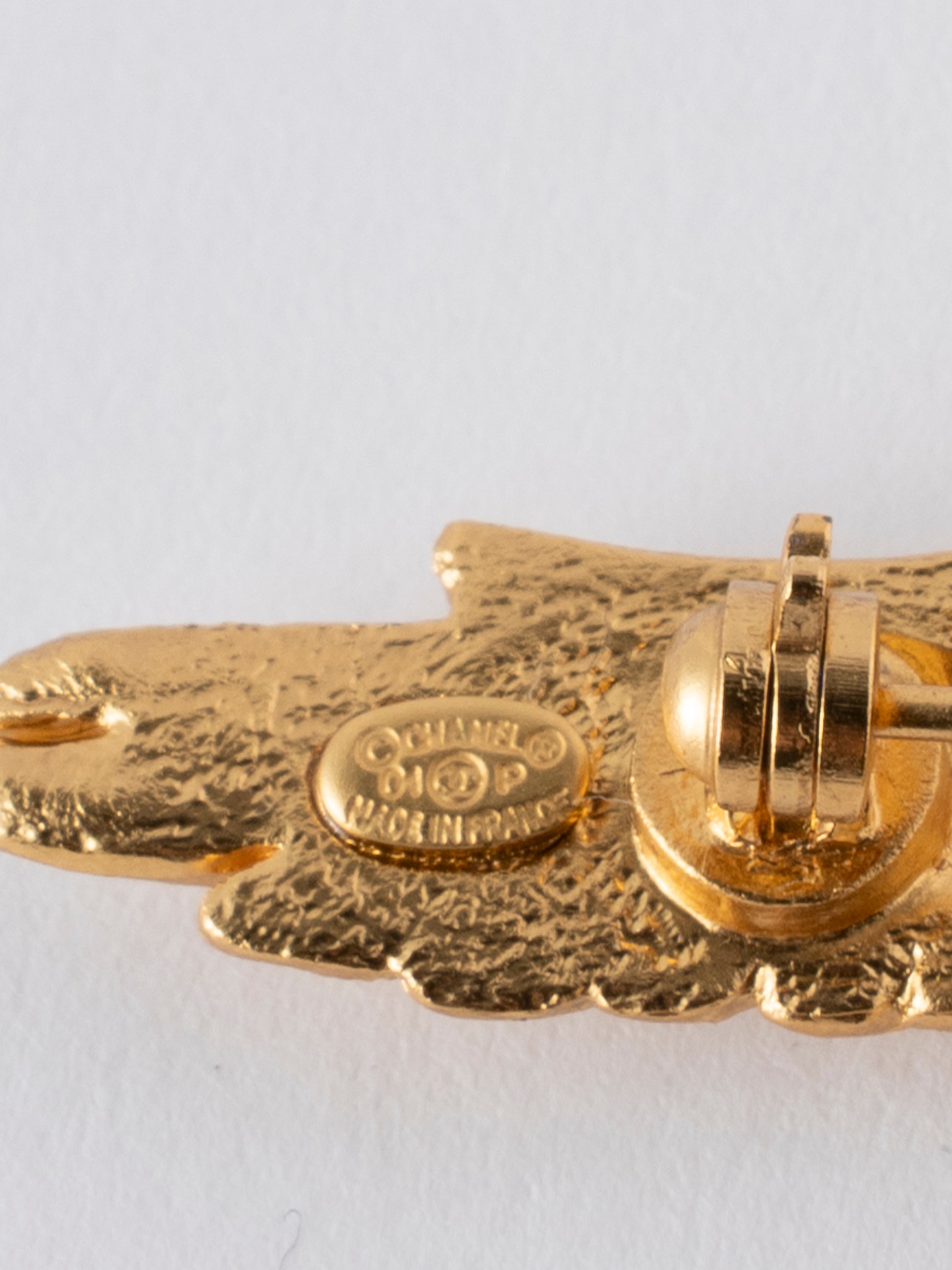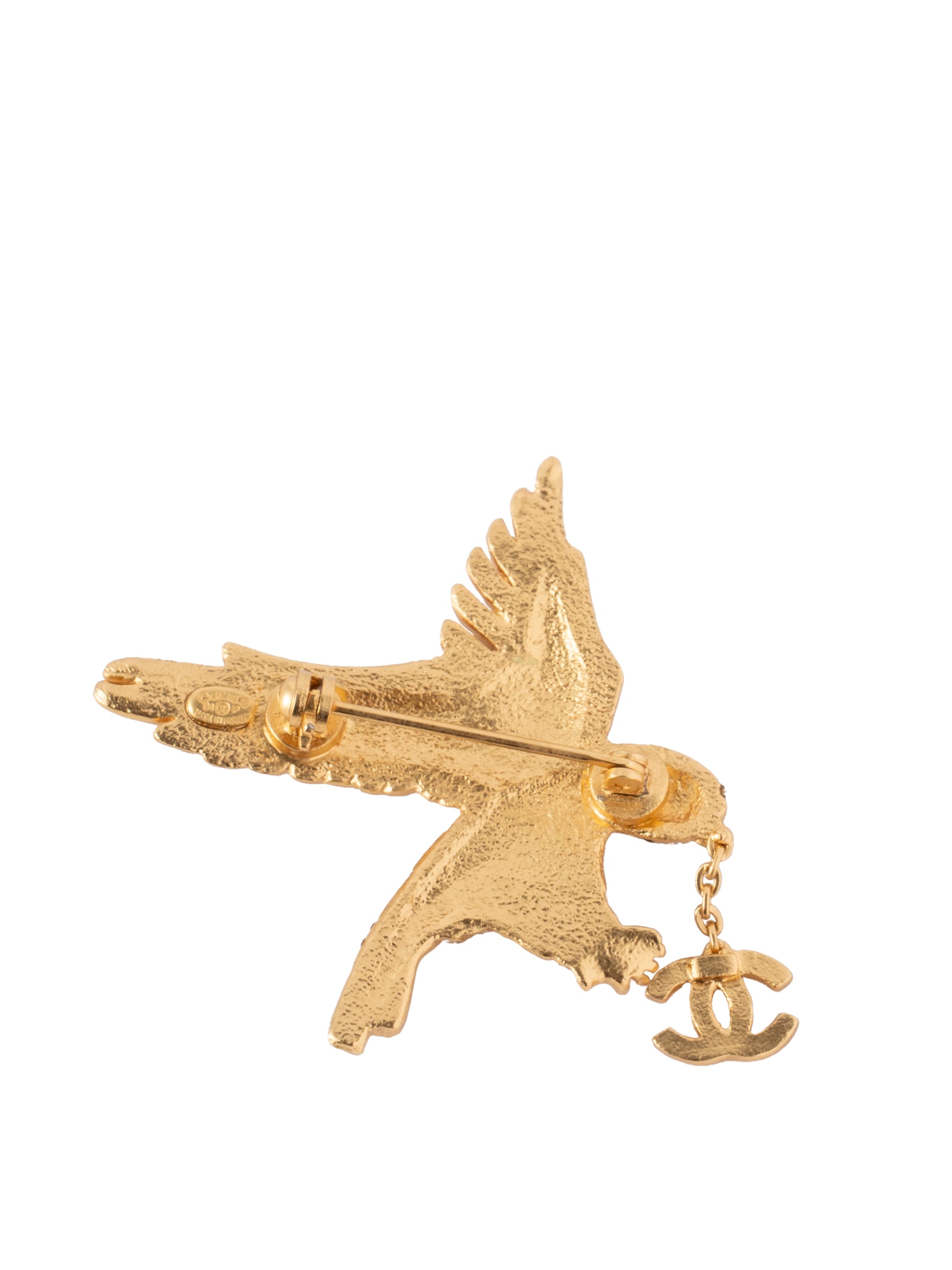 シャネル イーグル ラインストーン ブローチ 金メッキ ゴールド