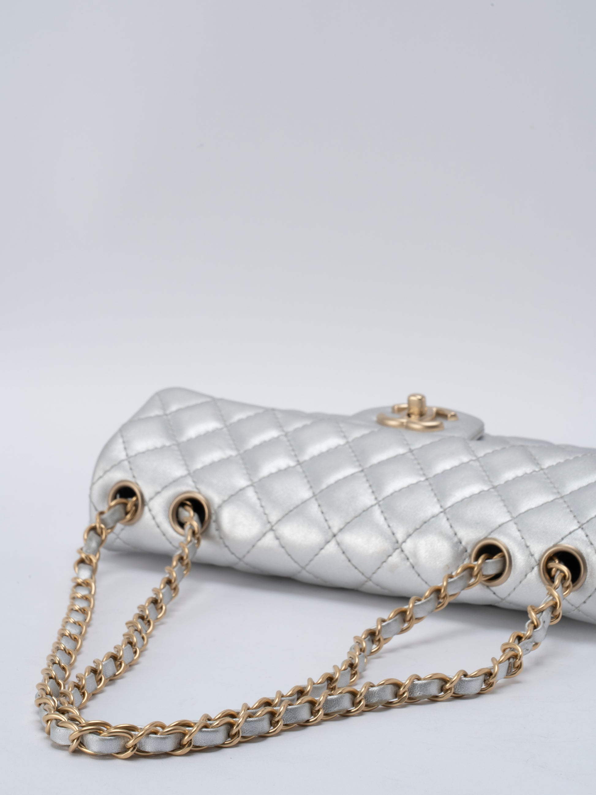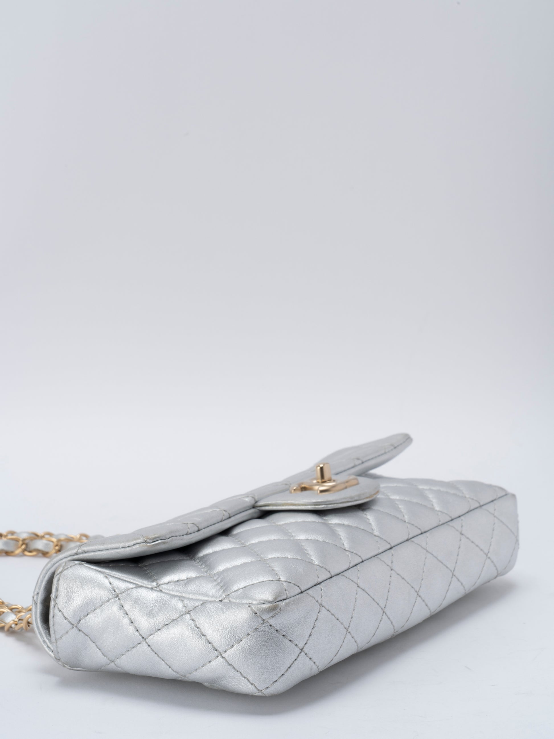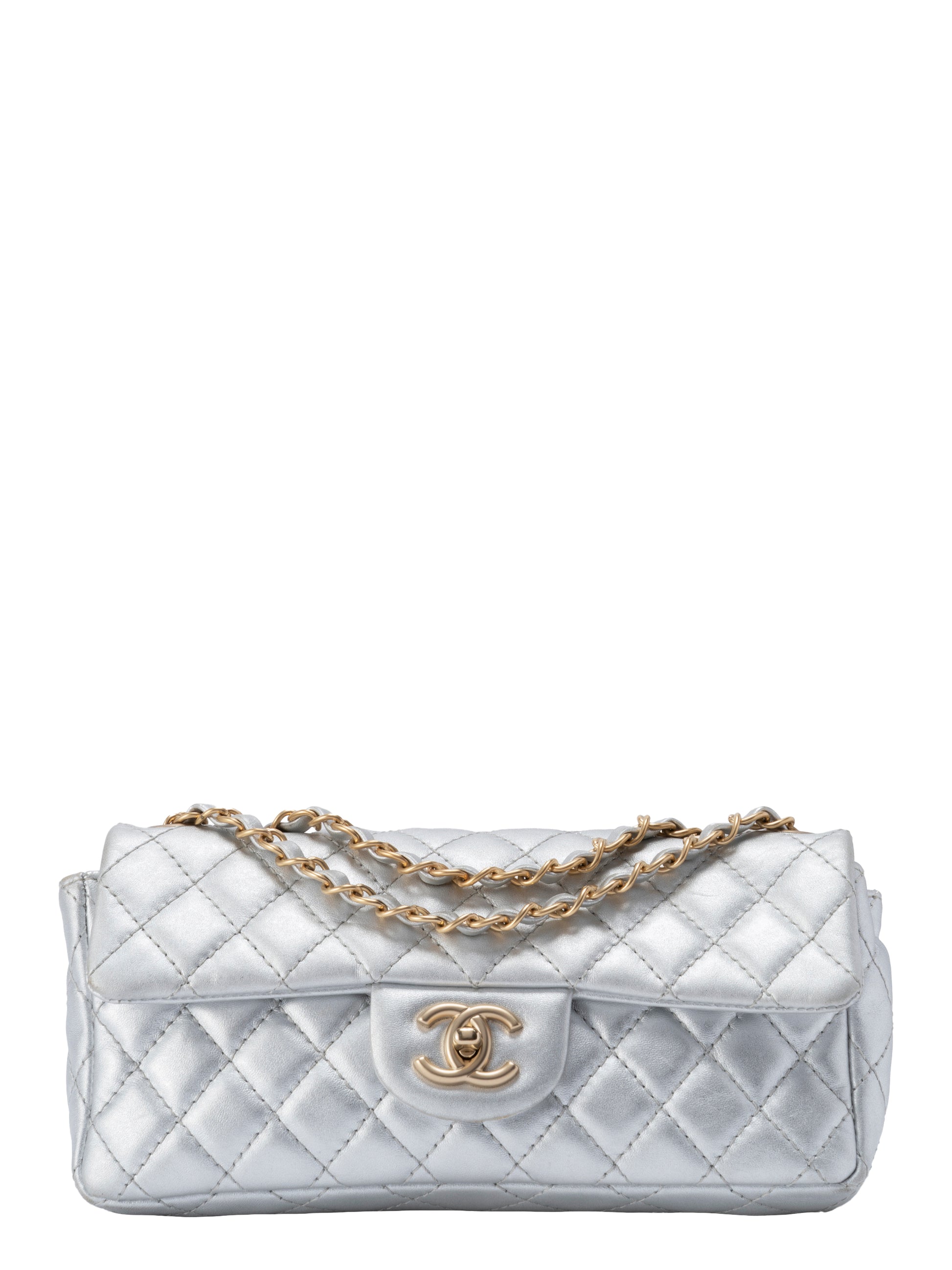 シャネル イーストウエスト Wチェーンショルダーバッグ ラムスキン シルバー ゴールド金具