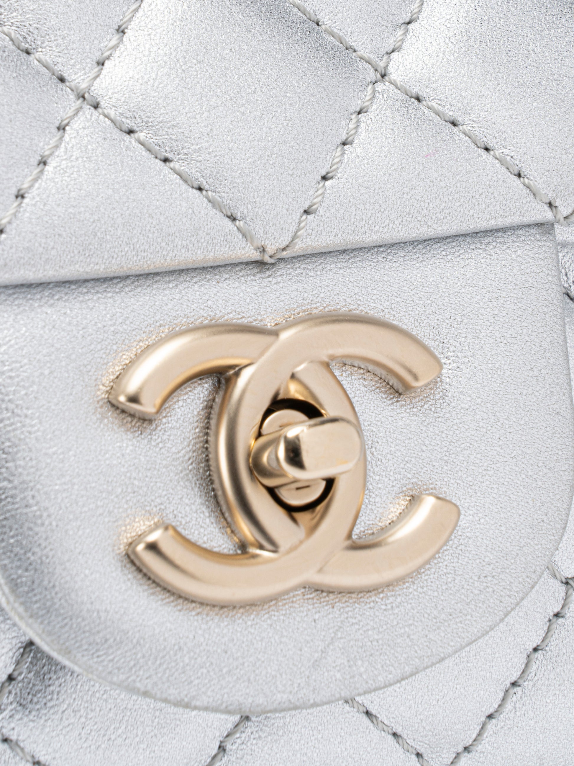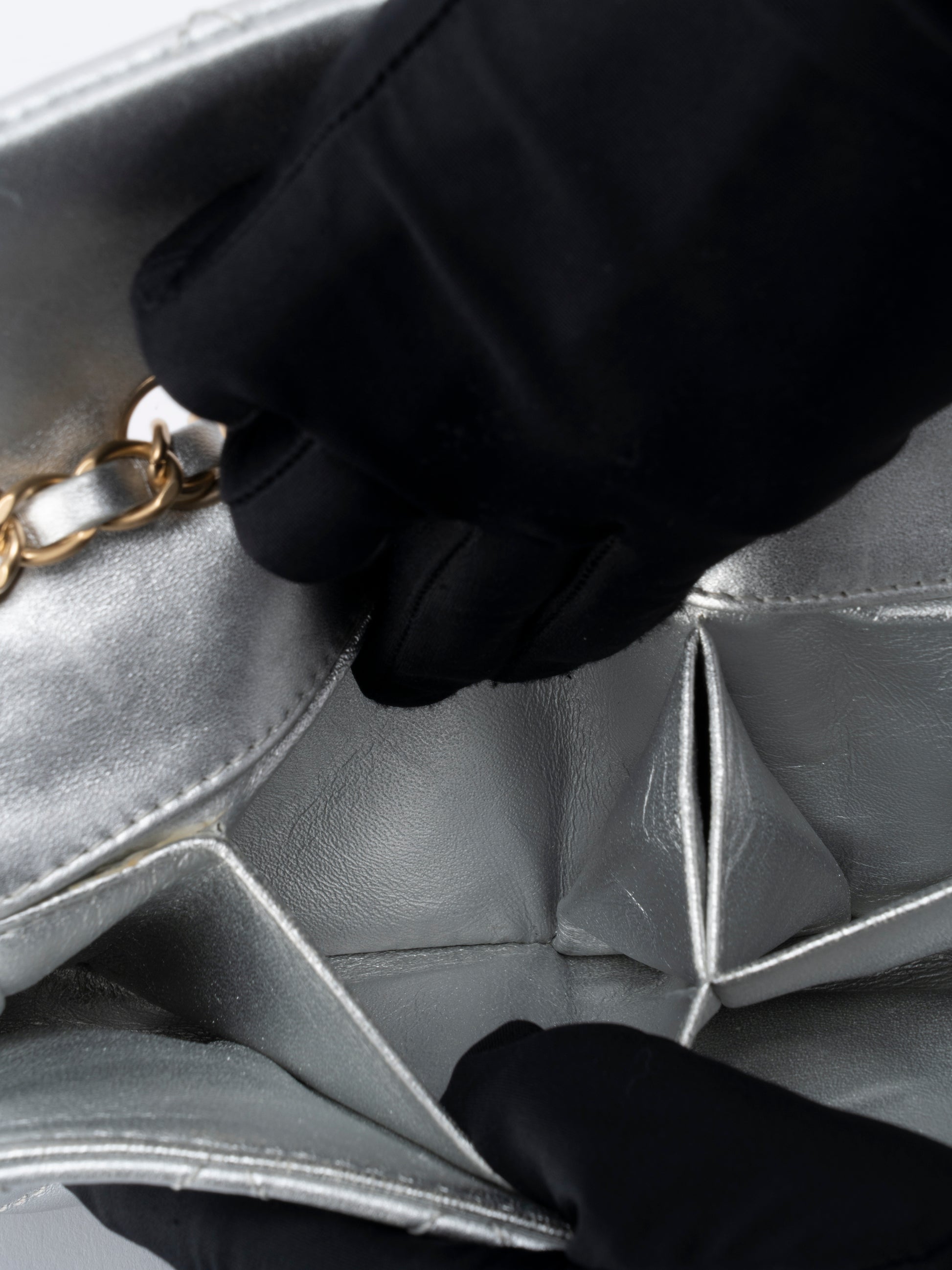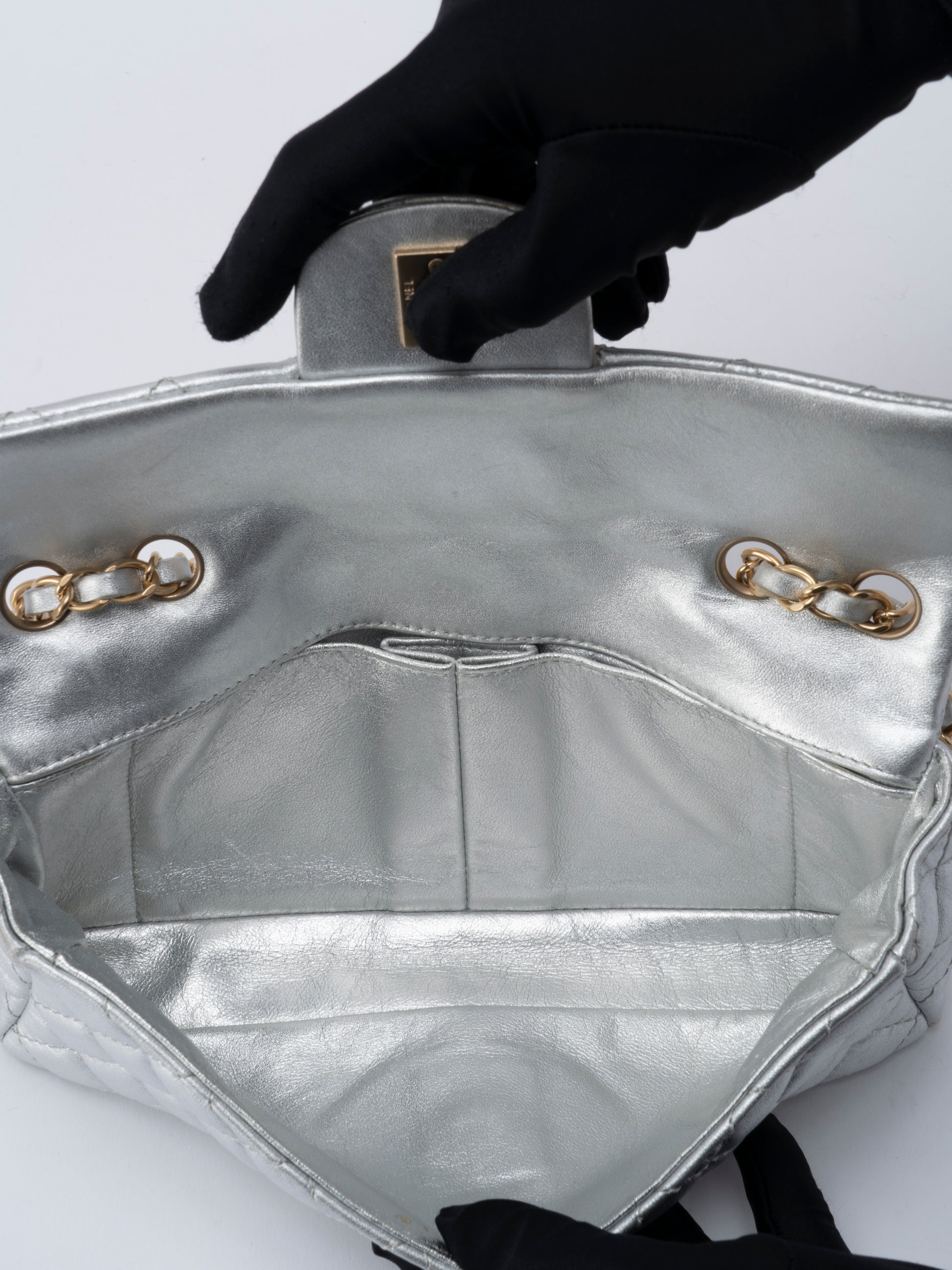 シャネル イーストウエスト Wチェーンショルダーバッグ ラムスキン シルバー ゴールド金具