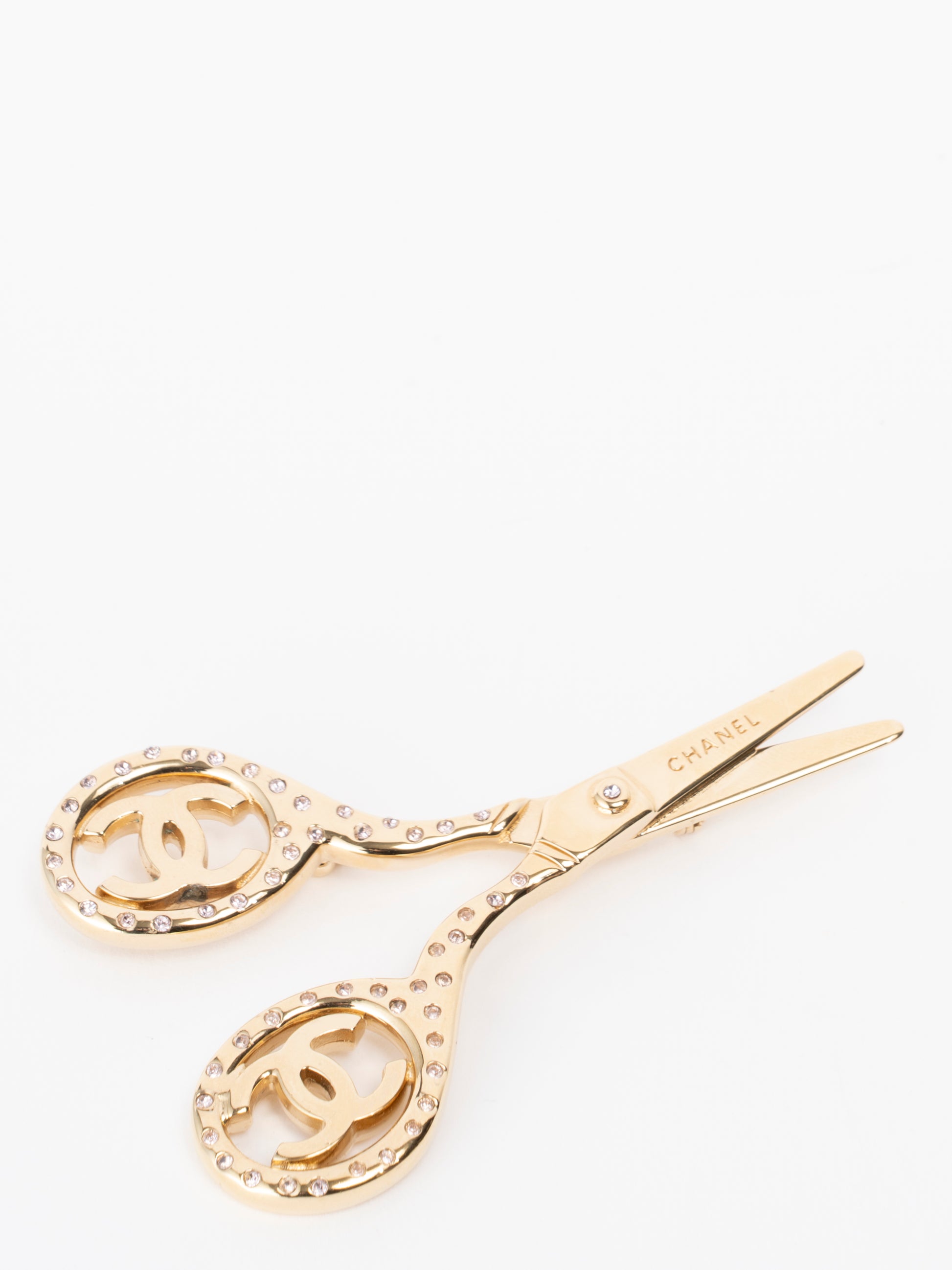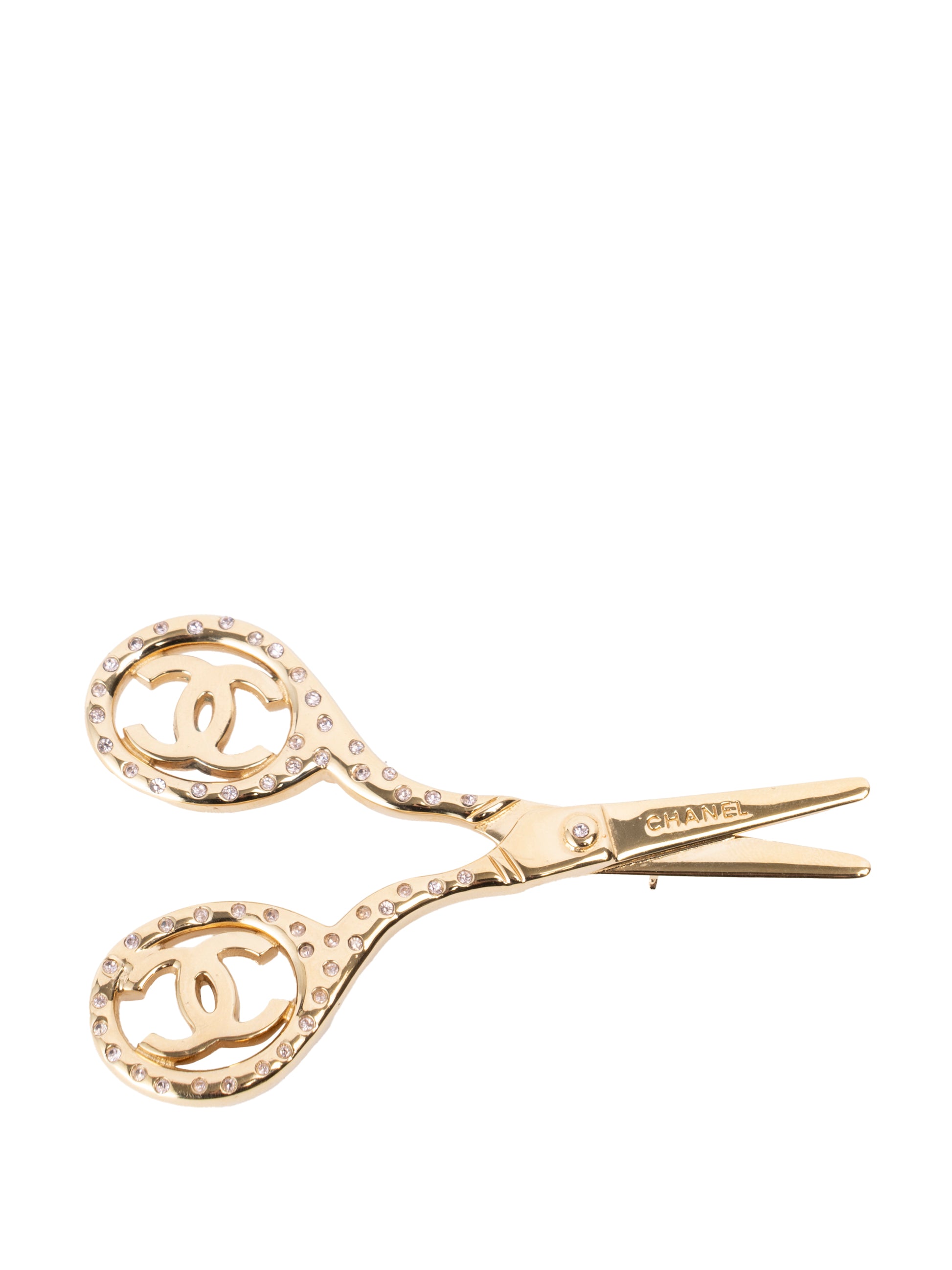 シャネル ココマーク シザーモチーフ ラインストーン ブローチ 金メッキ ゴールド