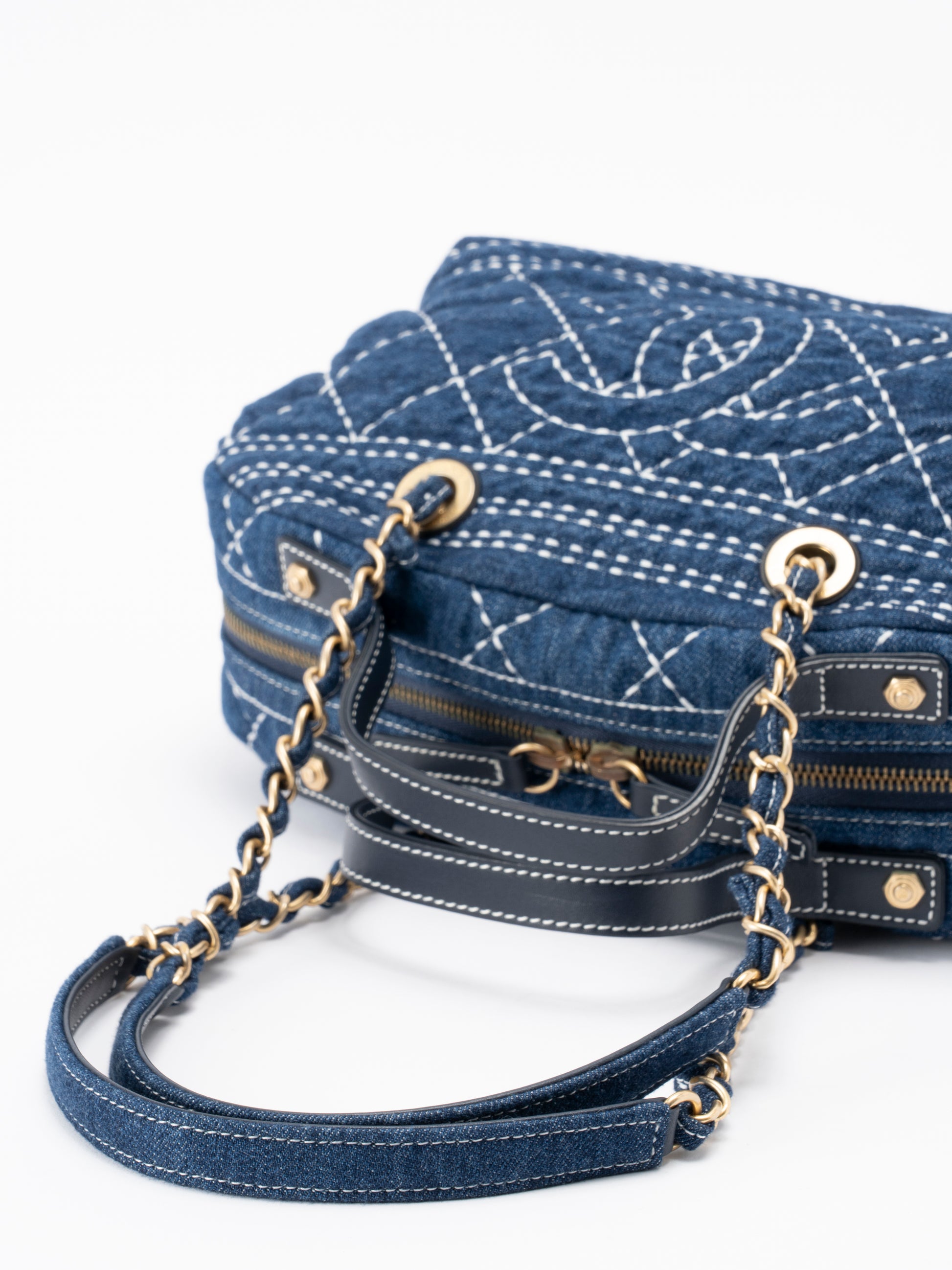 シャネル ココマーク ワイルドステッチ 2wayハンドバッグ デニム ブルー ゴールド金具