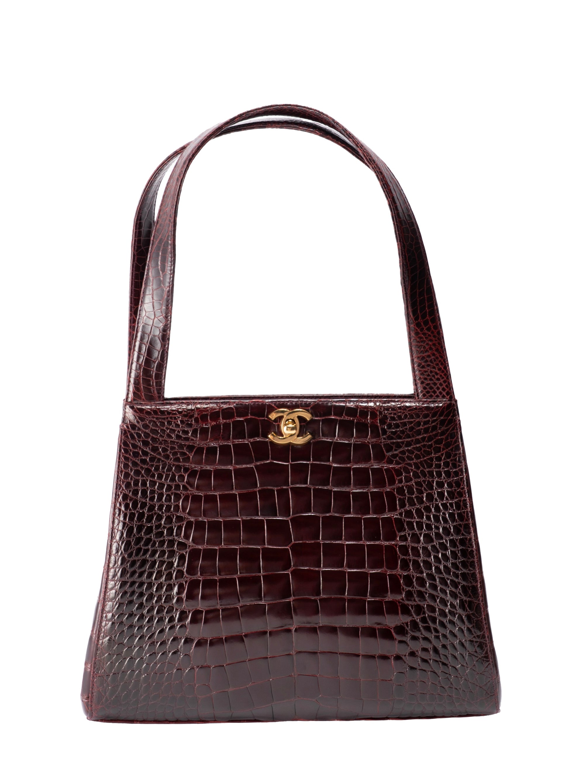 シャネル ターンロック シャインクロコ ワンショルダーバッグ アリゲーター ボルドー ゴールド金具
