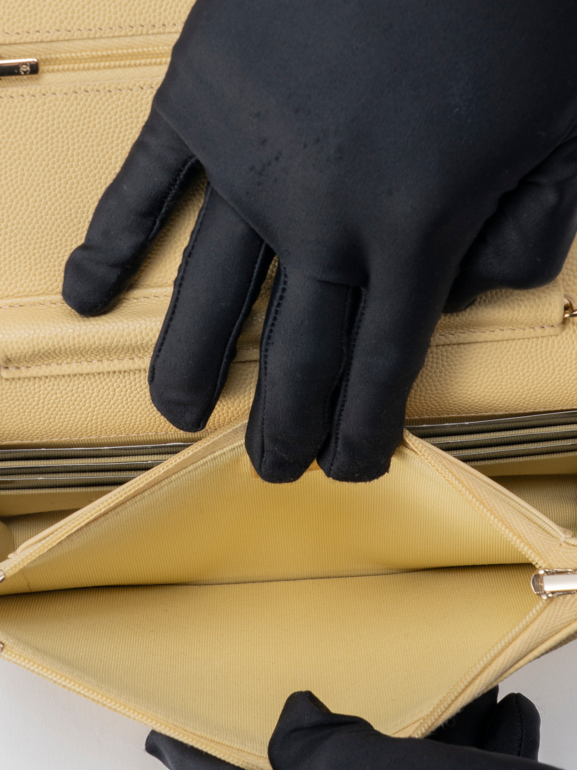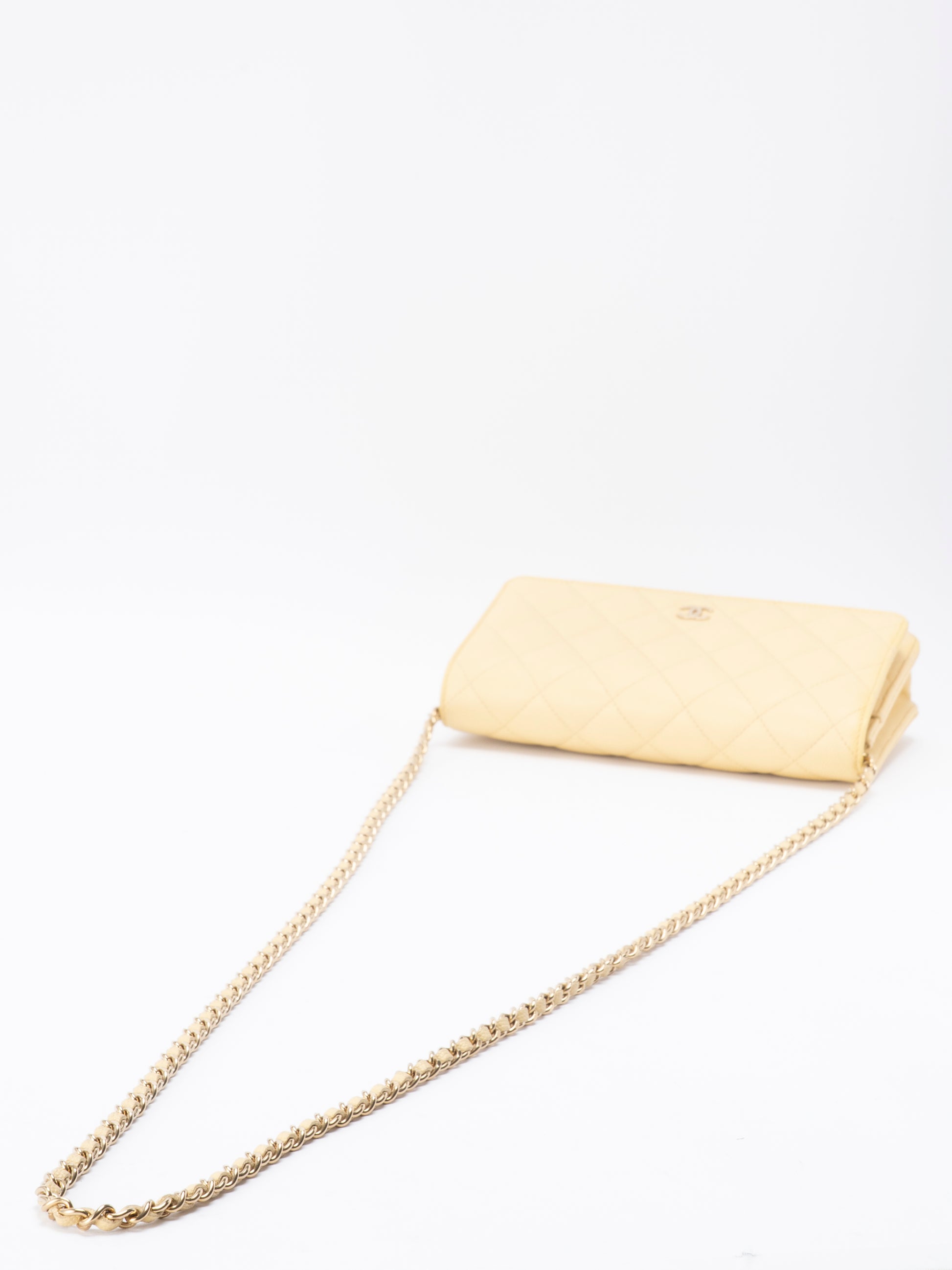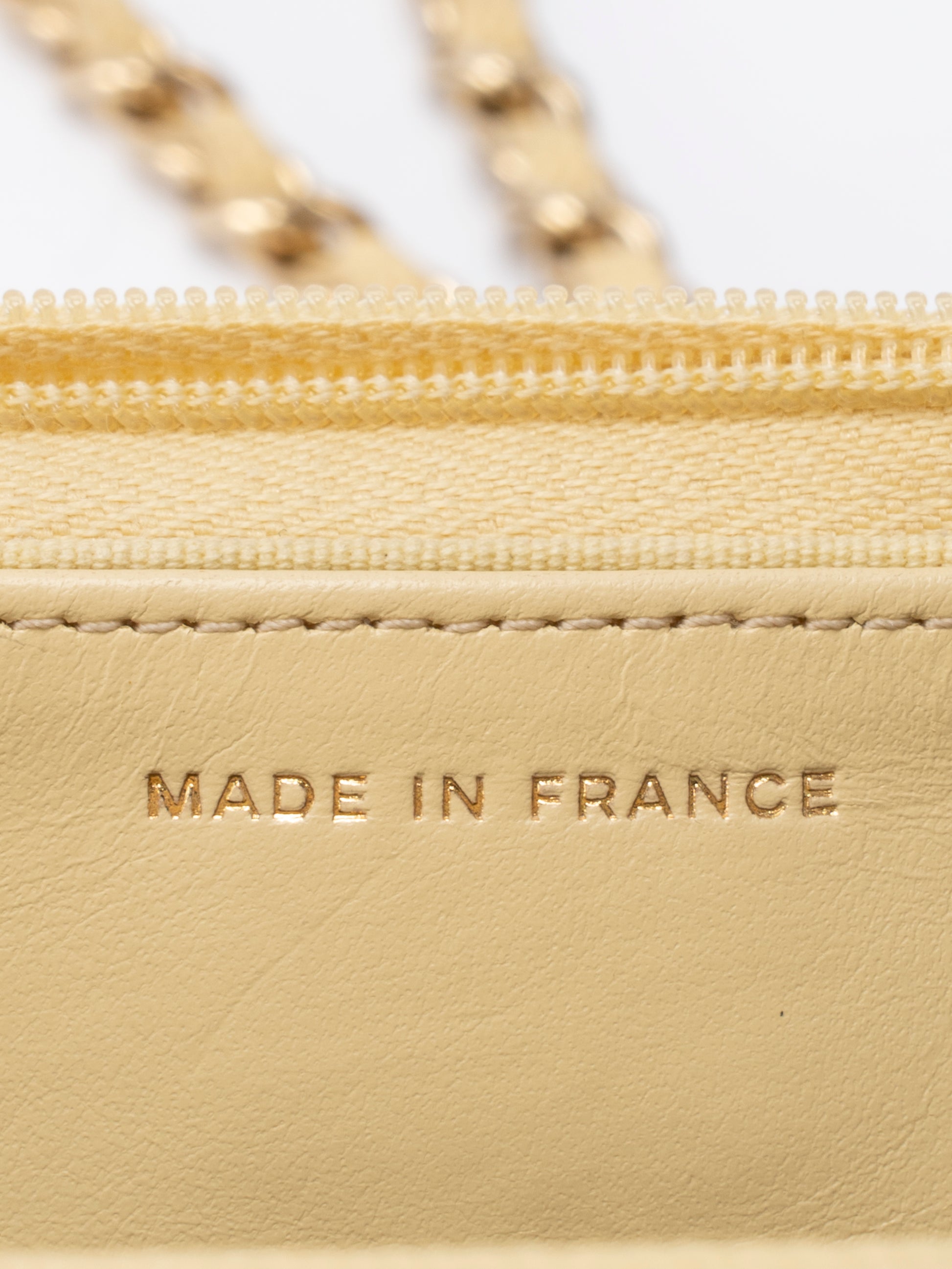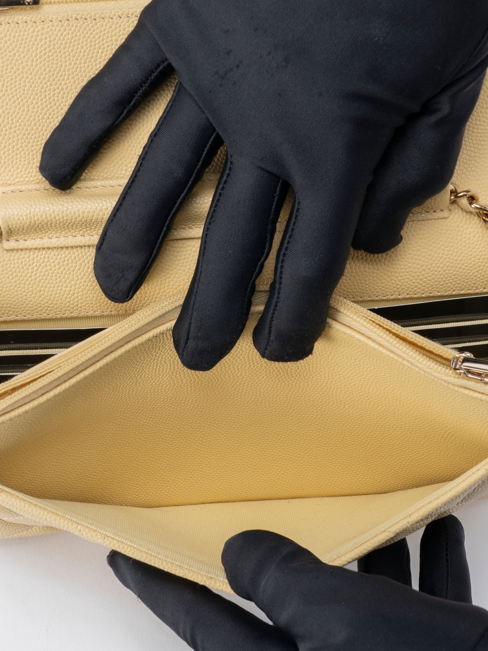 シャネル チェーンウォレット ターンロック シリアルプレート チェーンショルダーバッグ キャビアスキン イエロー ゴールド金具