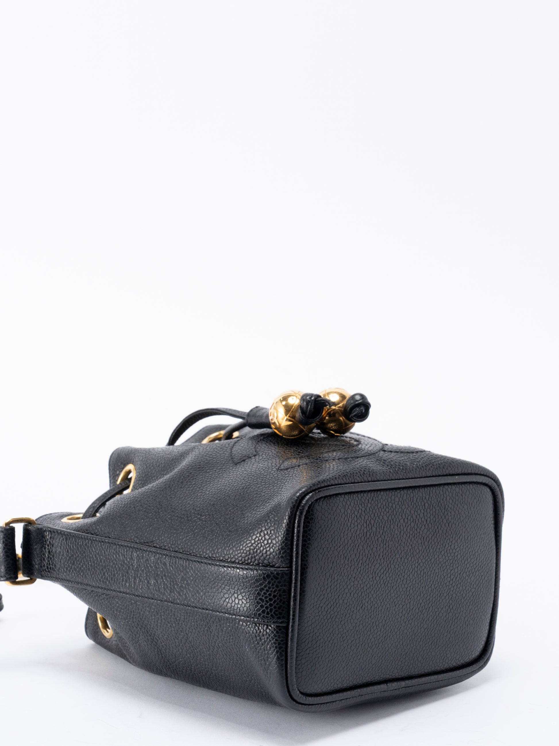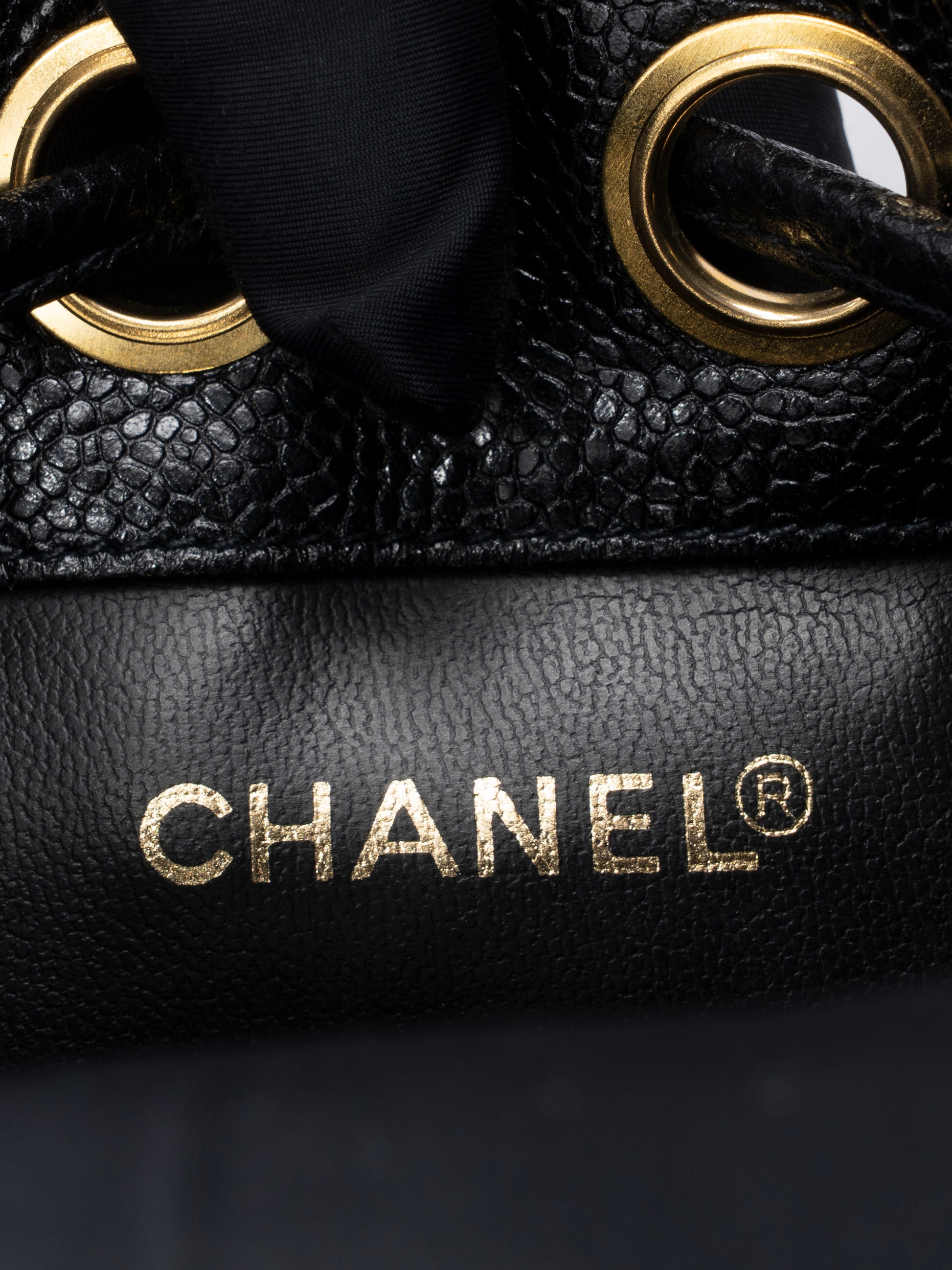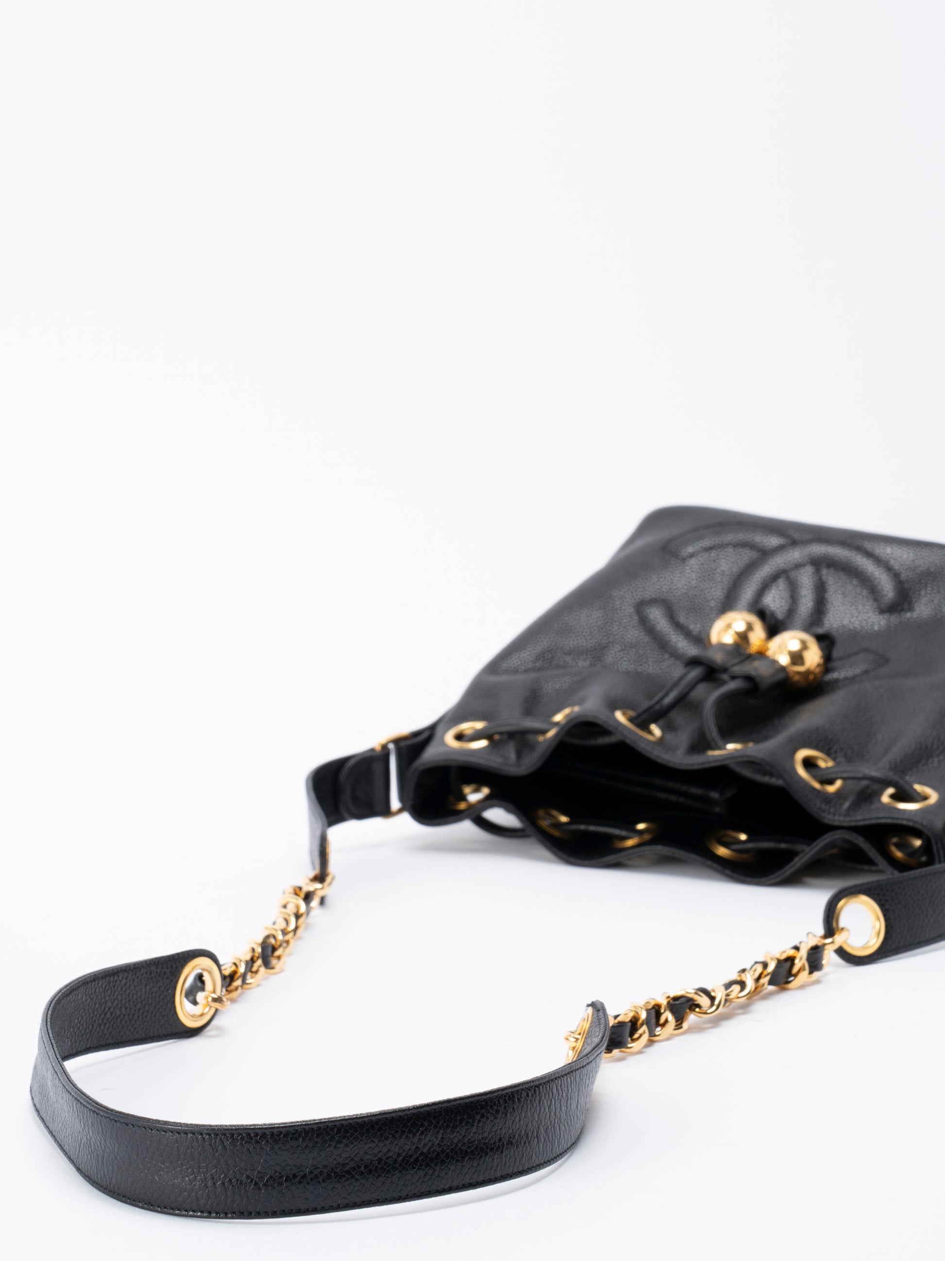 シャネル デカココ 巾着 チェーンショルダーバッグ キャビアスキン ブラック ゴールド金具