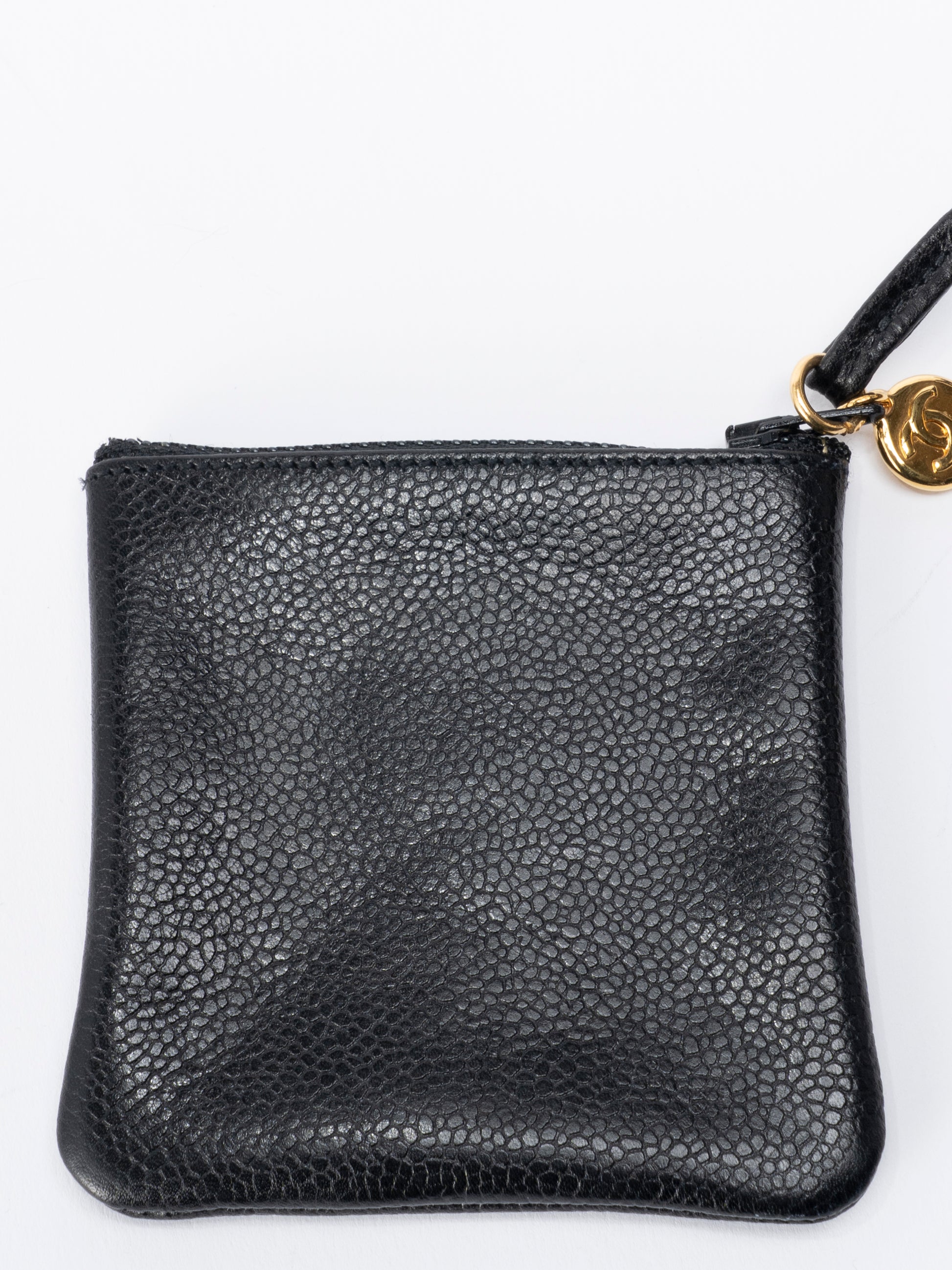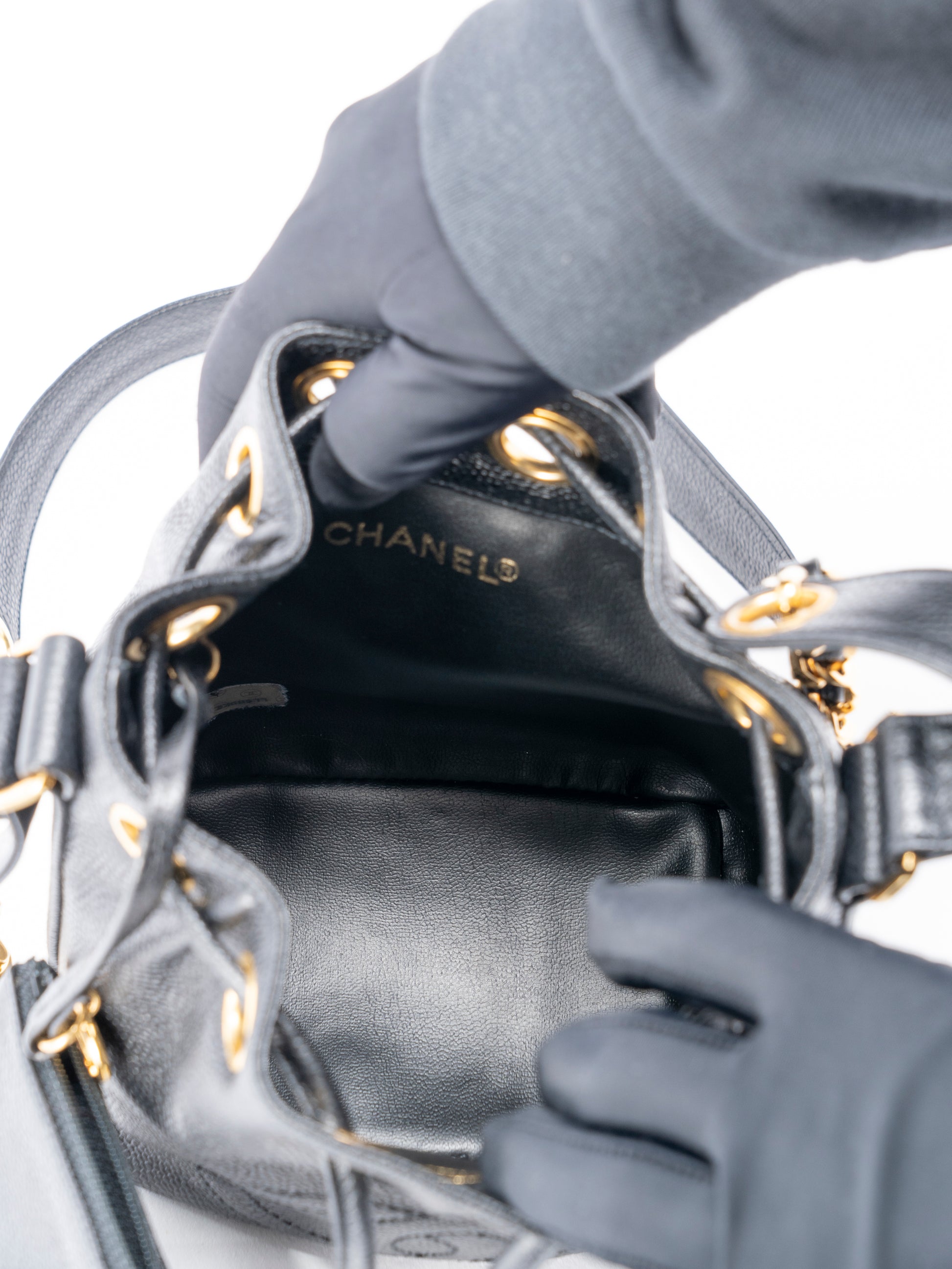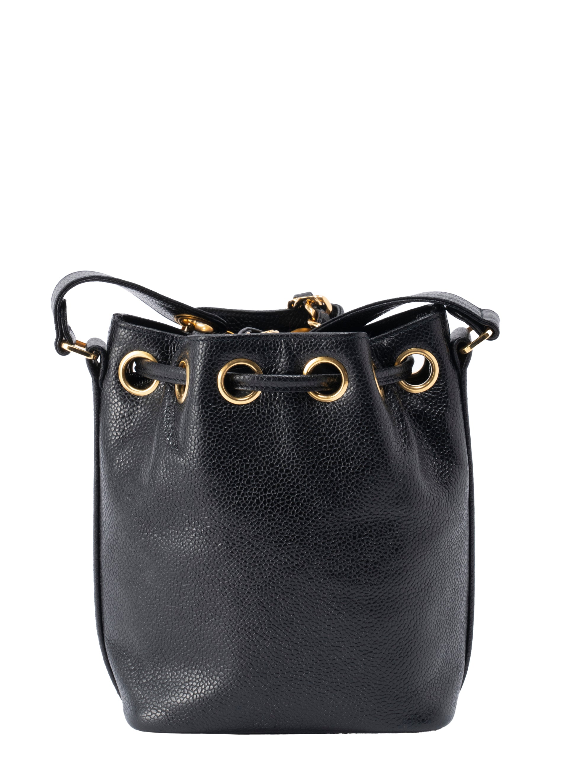 シャネル デカココ 巾着 チェーンショルダーバッグ キャビアスキン ブラック ゴールド金具